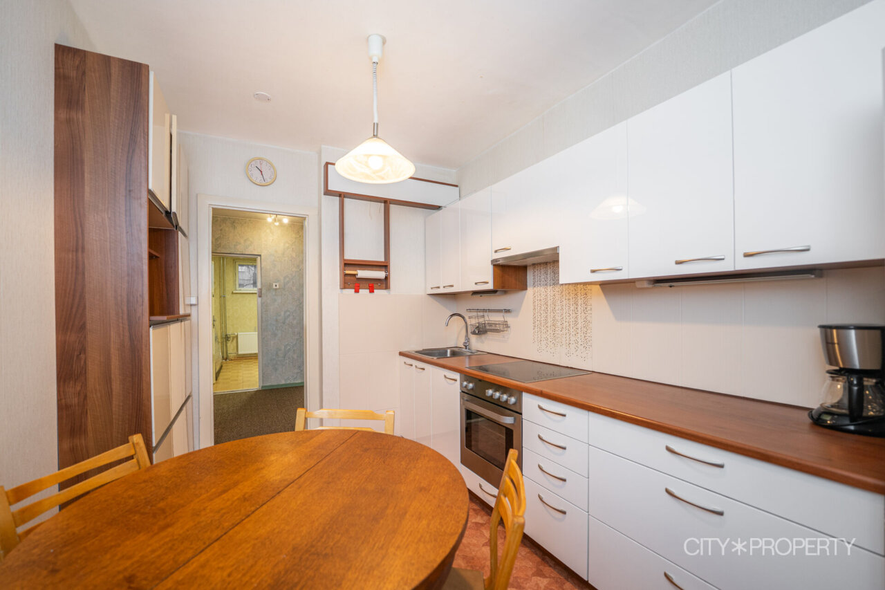 Köök on täielikult varustatud, sealhulgas elektripliit koos ahjuga, õhupuhasti ning külmkapp – kõik, mida vajate mugavaks toiduvalmistamiseks. Esikus on mugav sisseehitatud kapp, mis pakub palju hoiuruumi.