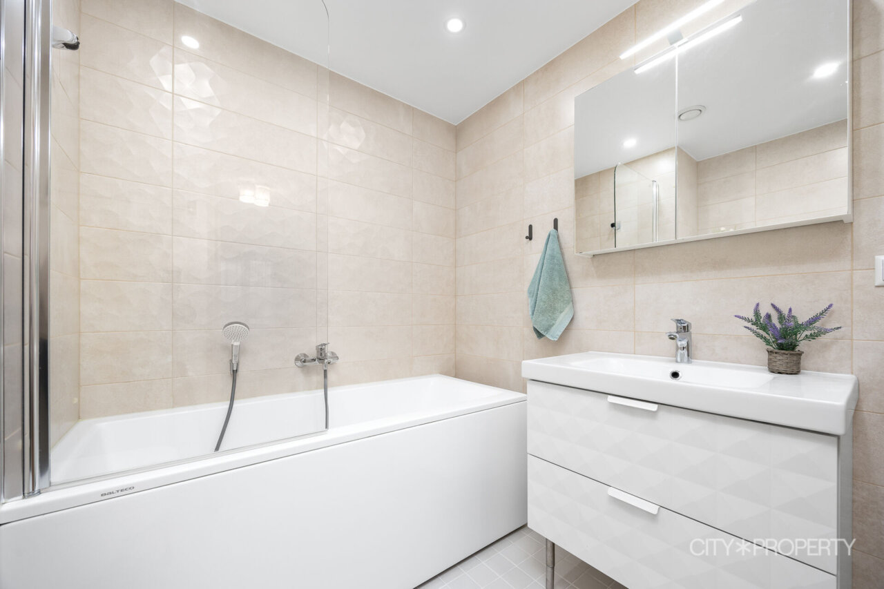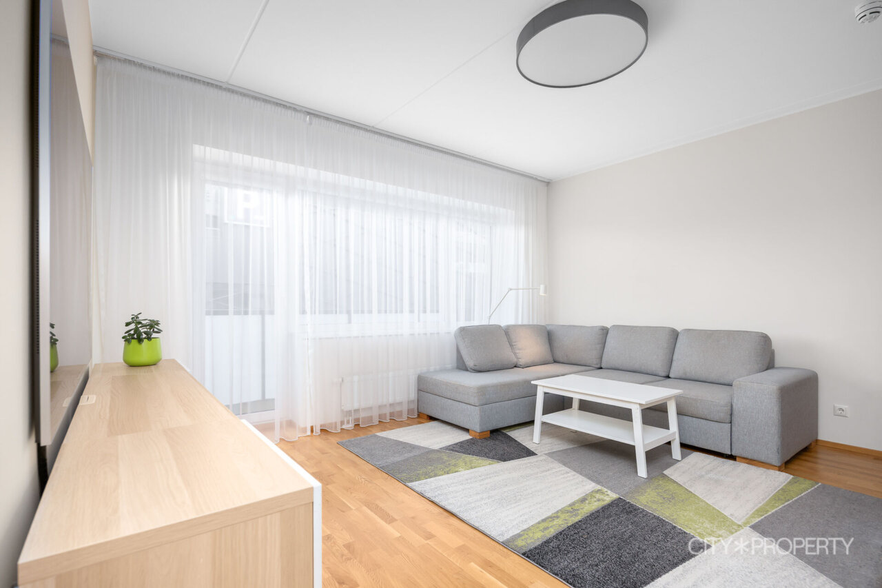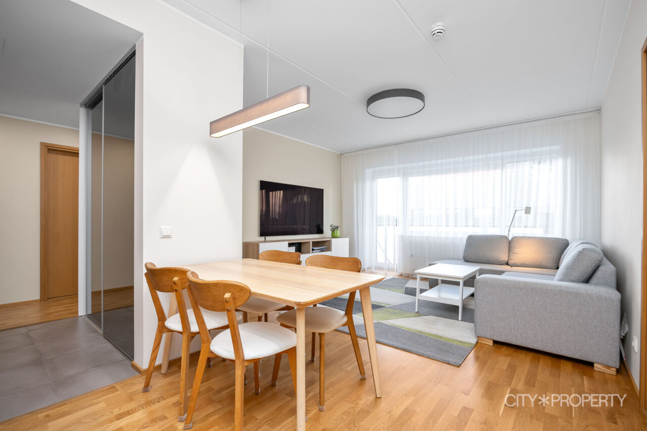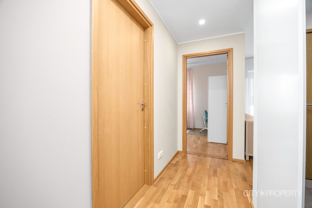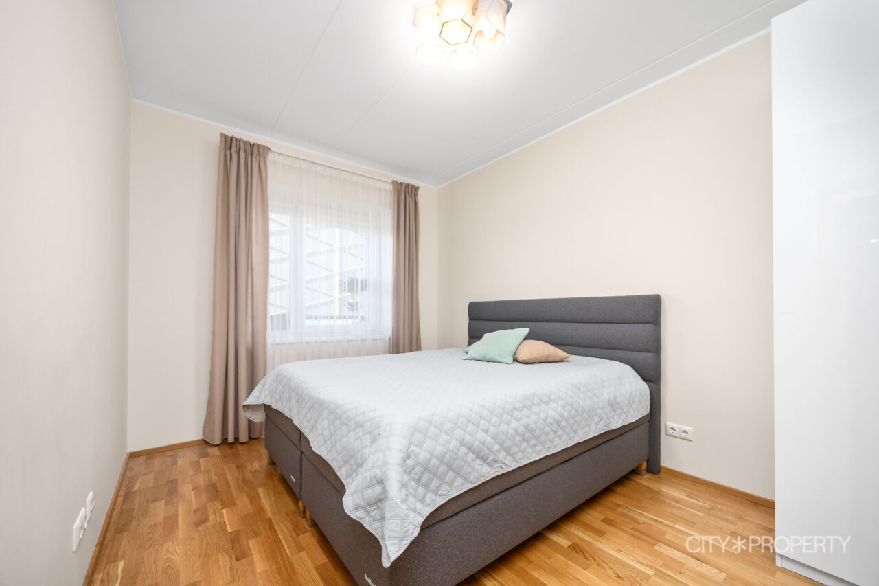 Kortermaja on valminud 2019. aastal. Korteri seinad on värvitud neutraalsetes heledates toonides. Tubade põrandaid katab naturaalne tammeparkett, vannitoad on plaaditud ning olemas põrandaküte. Korterile on paigaldatud kolmekordsed pakettaknad ja olemas soojustagastusega sundventilatsiooni süsteem. Igast ruumist saab eraldi reguleerida radiaatoreid vastavalt oma soovile ja vajadusele.