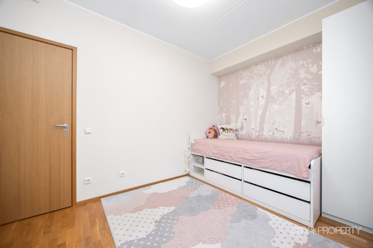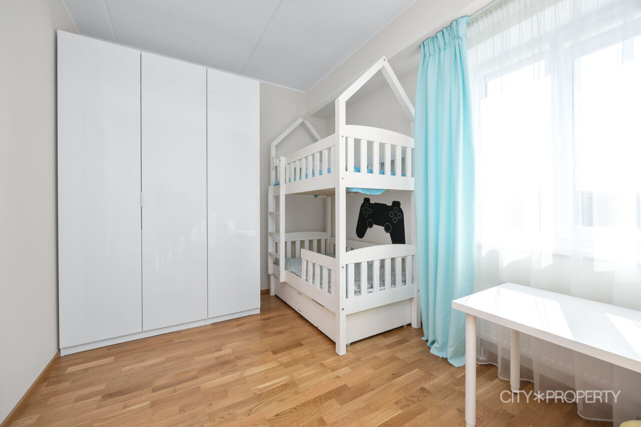 Elutoast on pääs rõdule, mille suuruseks on 9,6 m², mis annab hea võimaluse suvel hommikukohvi nautida ja õhtuti lummavaid päikeseloojanguid. Peamagamistoast on pääs otse privaatsesse tualett-vannituppa, kus on olemas põrandaküte. Lisaks veel kaks hubast magamistuba, mis sobivad suurepäraselt lastele, külalistele või kodukontoriks. Olemas eraldi avar tualett ja duširuum ning põrandaküte.