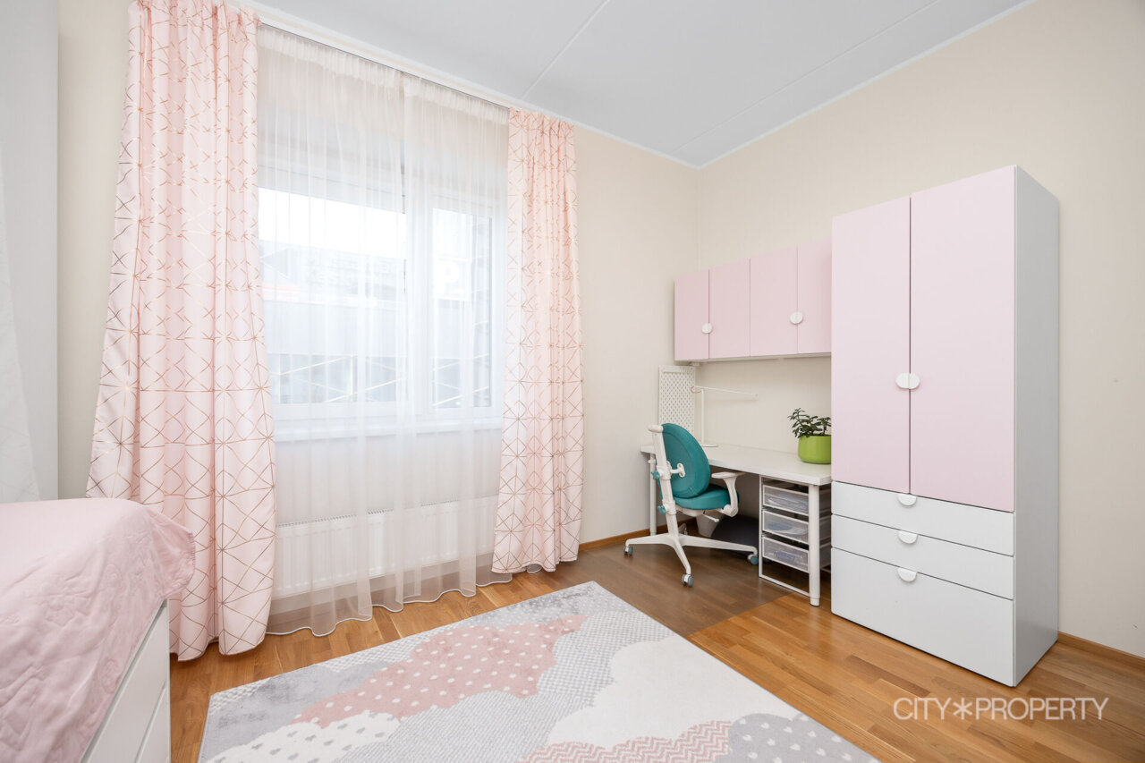 Planeeringu poolest on tegemist ideaalse perekorteriga, toad on avarad ja valgusküllased ning magamistoad piisava suurusega. Kogu korteris on avarad aknad, mis annavad palju valgust ja lisavad avarust.