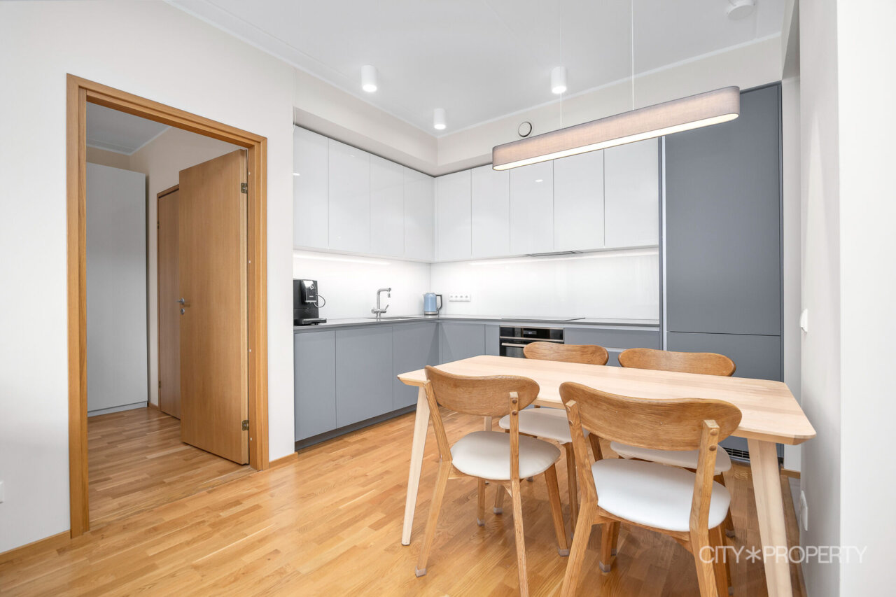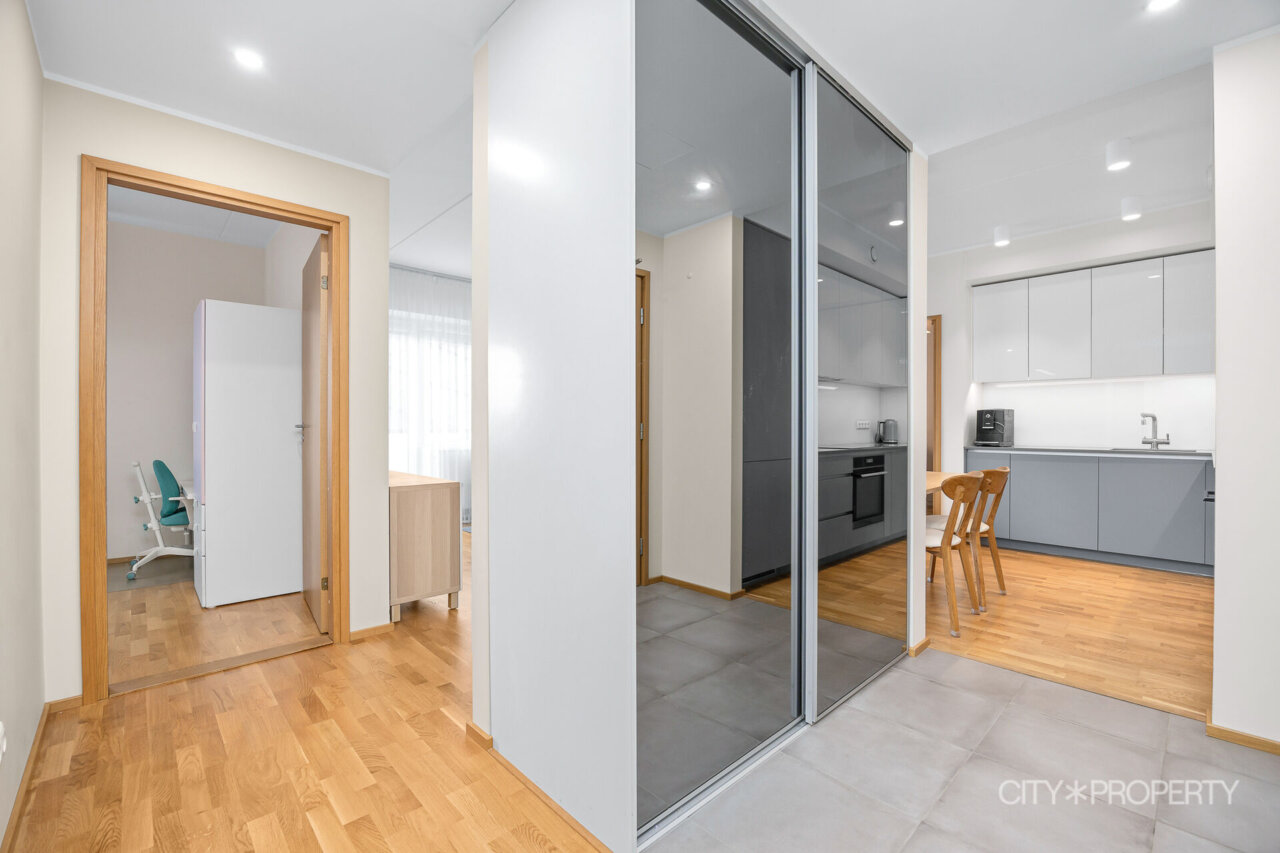 Kööki sisustab eritellimusel tellitud köögimööbel koos vajaliku integreeritud tehnikaga (induktsioonpliit, elektriahi, nõudepesumasin, kubu ja külmkapp). Koridoris on mahukas sisseehitatud garderoobikapp, mis mahutab palju vajalikku.