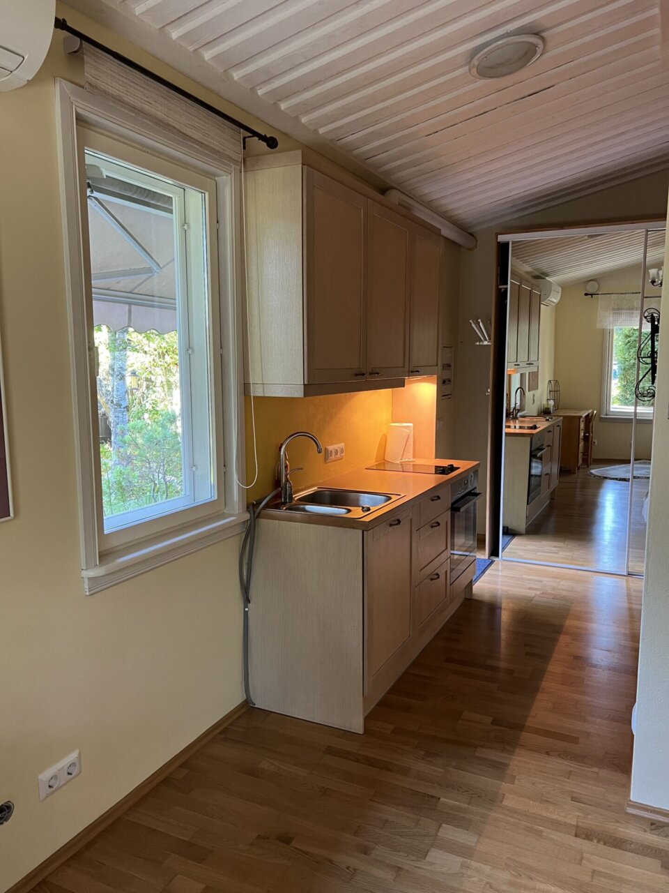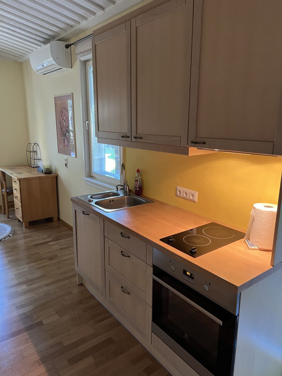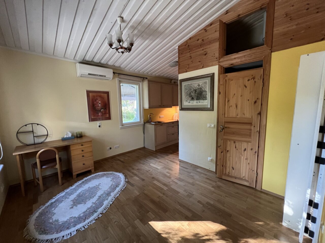 Kinnistul asub ka abihoone ca 25m2, mis on täielikult renoveeritud. Selle koosseisu kuulub köök/elutuba, koridor, duširuum koos WC-ga, majapidamisruum/garderoob ja terrass. Köögis olemas köögimööbel koos tehnikaga (elektripliit, elektriahi,kubu, külmkapp). Paigaldatud õhksoojuspump, mis annab sooja talvel ja jahutab kuumadel suvepäevadel.