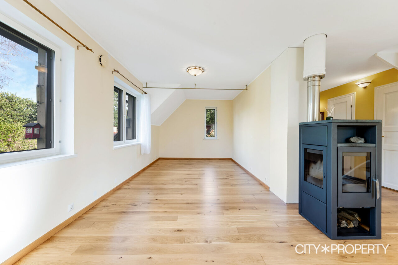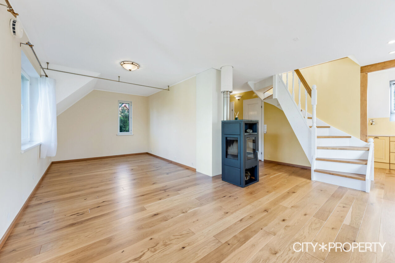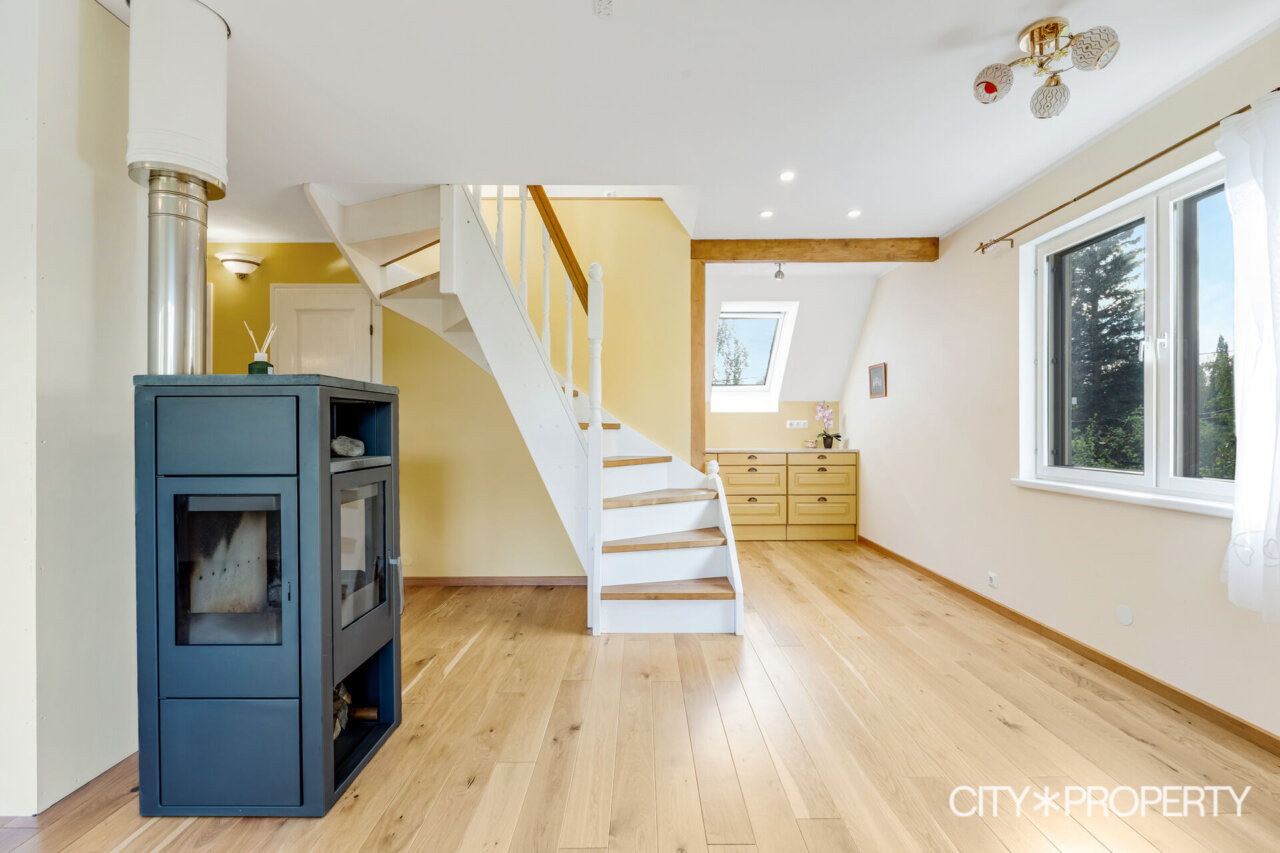 Teise korruse korter on ühendatud omavahel puidust trepiga, mis viib esimeselt korruselt teisele ja teiselt korruselt kolmandale. Korteri koosseisu kuulub avar elutuba koos poolavatud köögiga, koridor, aknaga vannituba ja WC. Elutuba sisustab puukütte kamin, mis pakub naudingut külmadel talveõhtutel.