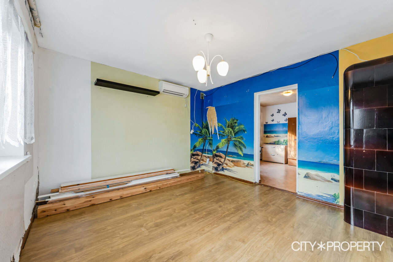 Korteri kooseisu kuulub kaks eraldi tuba ja köök, duširuum, WC ja panipaik. Esimese korruse korter vajab renoveerimist. Antud korteris on ahiküte. Esimesel korruse pindala 42,9 m2.