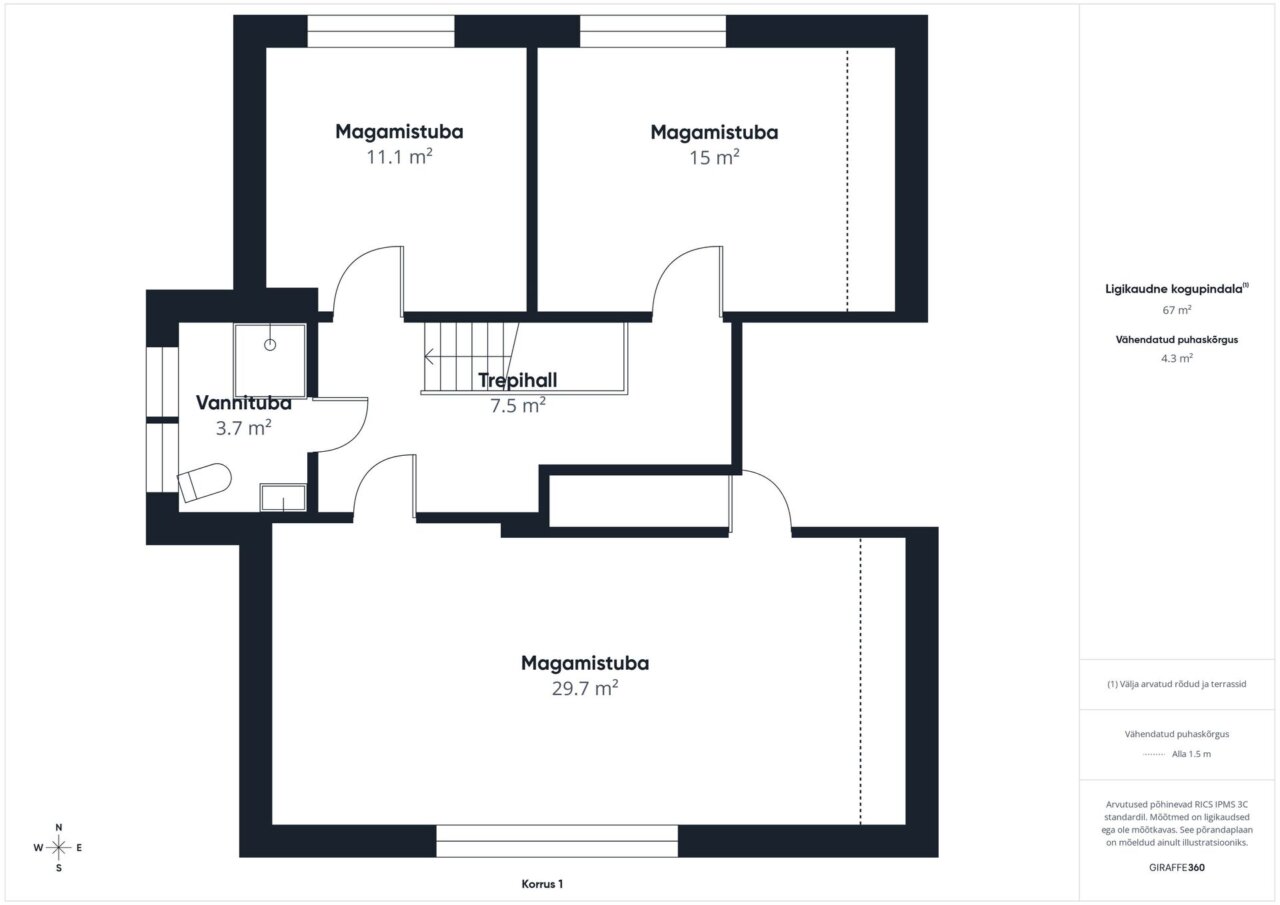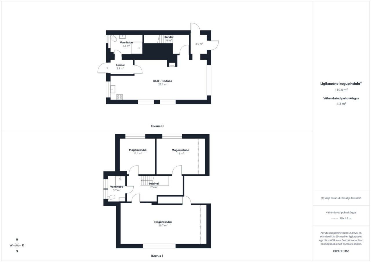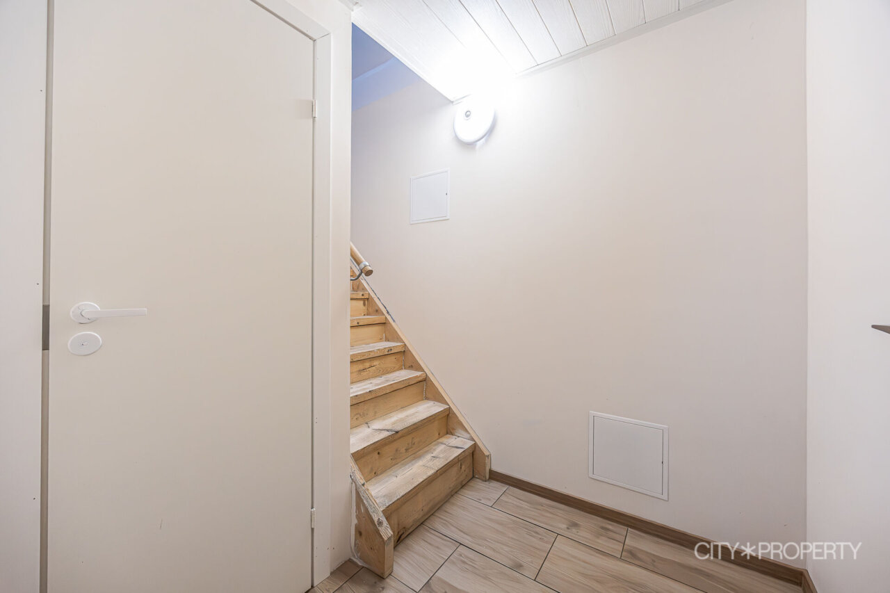 Esimese korruse põrandal on keraamiline plaat, teisel korrusel vinüülparkett.
