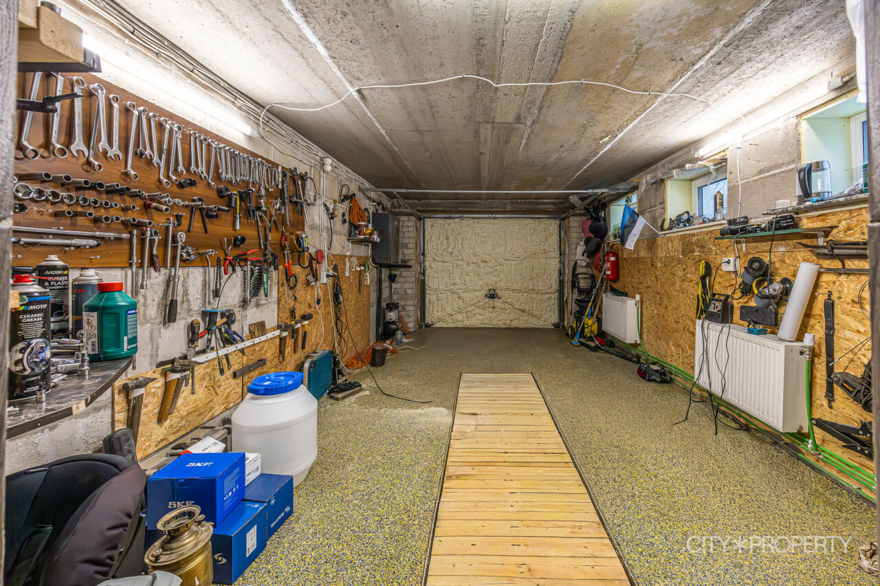 Majal on funktsionaalne garaaž koos autokanaliga, pakkudes suurepärast võimalust sõiduki hooldamiseks oma kodus.