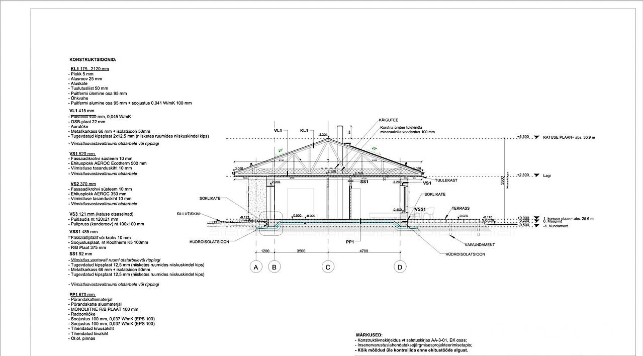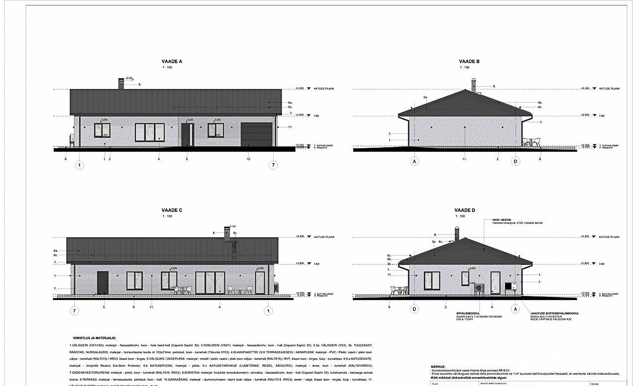 Välisviimistlus: ilmastikukindel krohv, krohvitud sokkel.