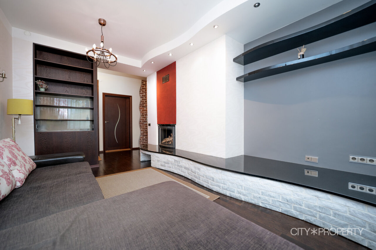 Elutoa keskseks elemendiks on Norra tippkvaliteediga soojustagastusega kamin, mis on paigaldatud vastavalt ametlikult kinnitatud projektile. Kamin loob hubasust ja soojust nii talveõhtuteks kui ka mõnusateks hetkedeks pere ja sõprade seltsis. Kamina ümber on kujundatud stiilne valgest marmorist televiisorialus, millele lisab väärikust mustast graniidist pealisplaat.