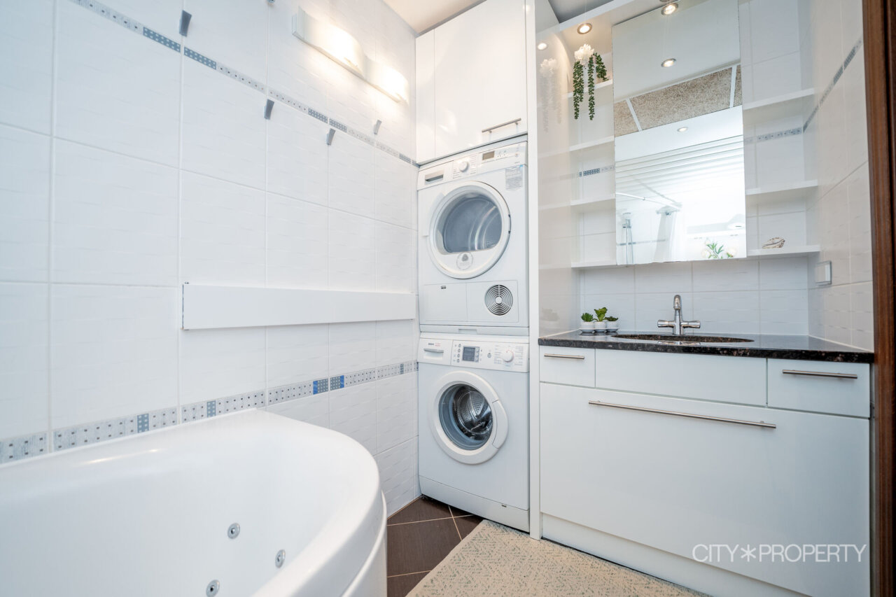 Vannituba on plaaditud, olemas on pesumasin ja kuivati ning lõõgastuseks valgusega ja isepuhastuva süsteemiga mõnus mullivann. Vannitoas on sundventilatsioon ning vahetatud torustik. Põrandal on elektriline põrandaküte.