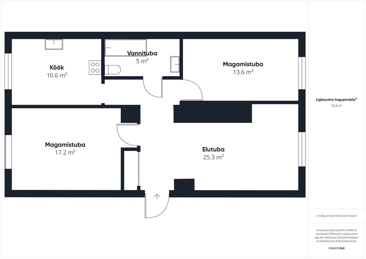 Korteri koosseisu kuulub esik, köök, elutuba, magamistuba, lastetuba ning vannituba/WC.