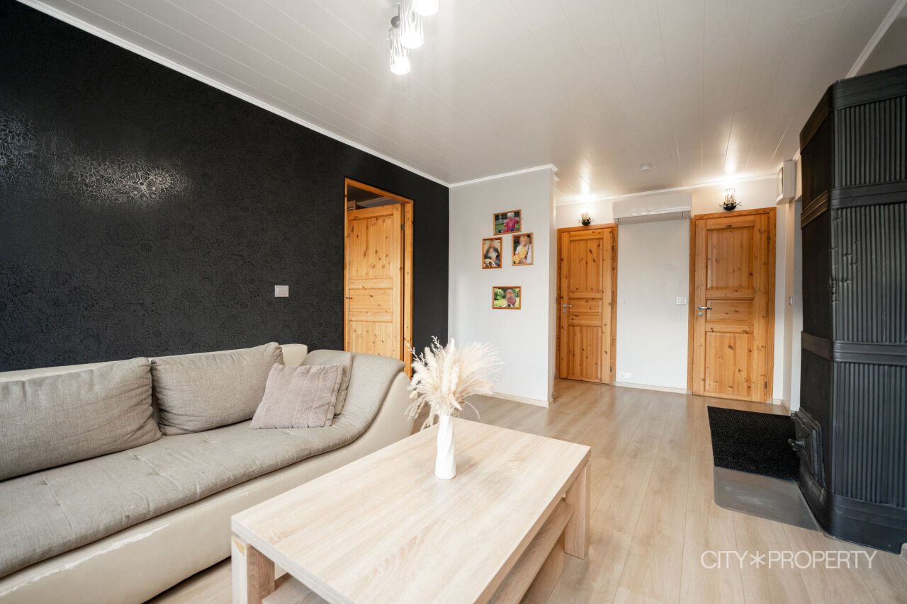 Müügile on tulnud valgusküllane 3-toaline korter. Korter asub kahekorruselise maja esimesel korrusel. Korteri koosseisu kuuluvad: avar elutuba, magamistuba, lastetuba/magamistuba, köök, duširuum ja WC. Duširuum ja WC on plaaditud ja olemas elektripõrandaküte. Magamistoas on sisseehitatud garderoobikapp, mis mahutab palju vajalikku. Korteri seinad on osaliselt värvitud ja osaliselt on kasutatud maitsekaid tapeete. Põrandaid katab heledas toonis laminaatparkett. Korteris on olemas puukütteahi.