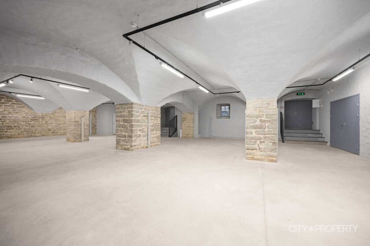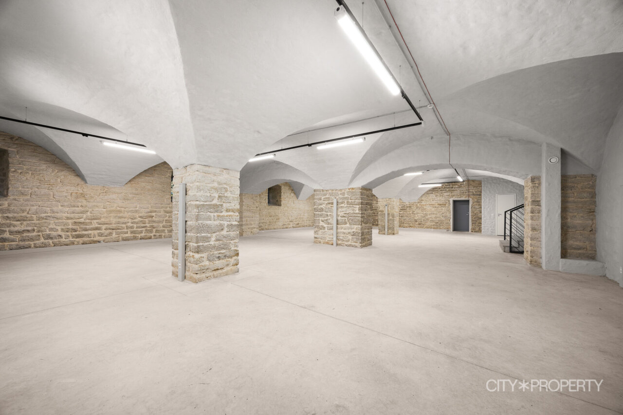 I korrus: laoruumid ja äripinnad (kokku üle 300 m²) — sobivad kaubandus-, lao- või teenindusettevõtte tegevuseks. Võimalus teha ka büroopindadeks. Kõik ühendused olemas: vesi, elekter, küte ja ventilatsioon. Suurema ruumi puhul on võimalus jagada ruum kaheks ja teha kaks pinda kontoriruumide jaoks.