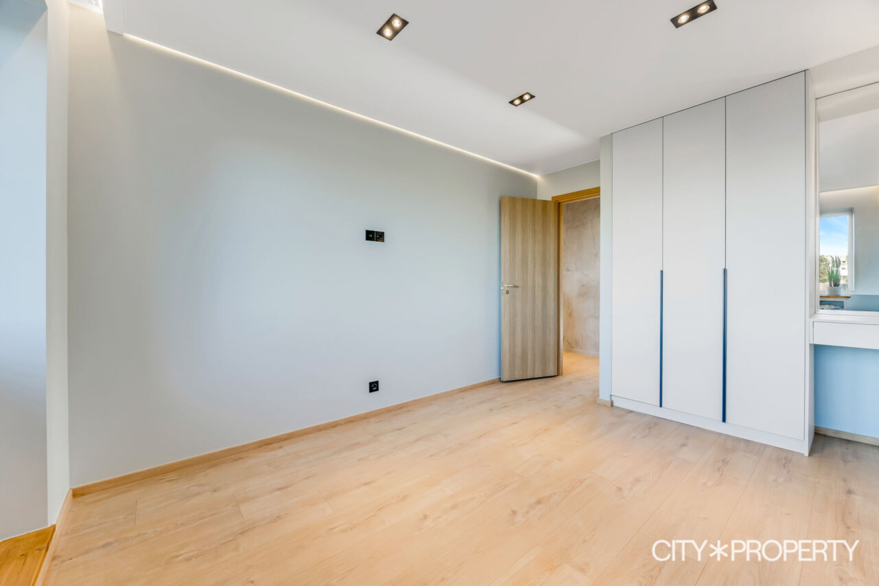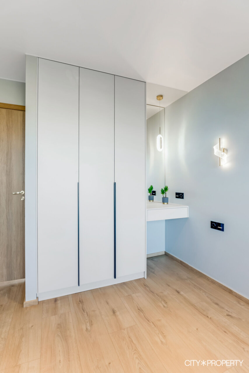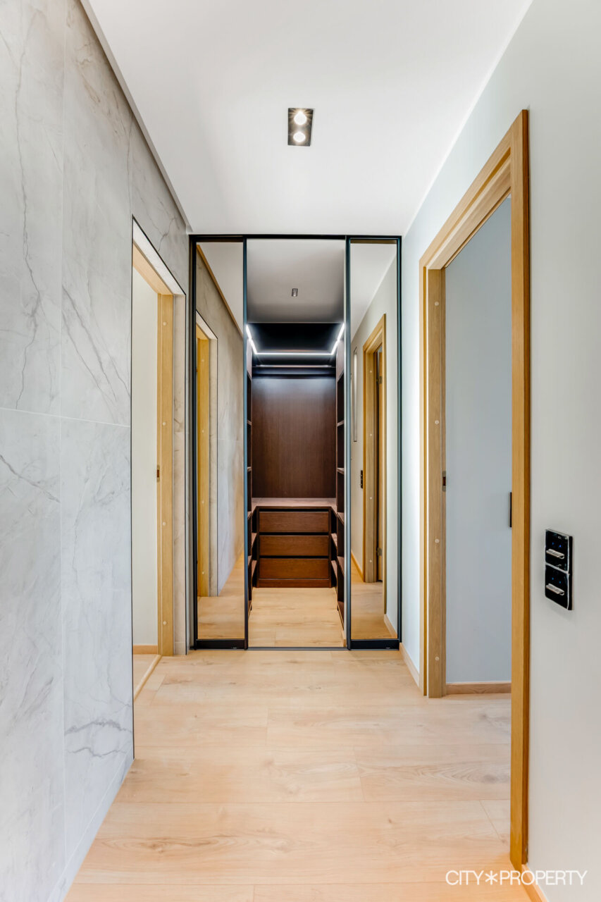 Vahetatud on kogu korteri elektrijuhtmestikud ja torustikud. Sisseehitatud mööbel selles kodus valmib eritellimusel just selle korteri jaoks. Esikus garderoobikapp ja walk-in garderoob, mõlemas magamistoas garderoobikapp, ühes lisaks meigilaud koos valgustusega, duširuumis santehnika,valamukapp, peegel ja valmisolek pesumasina ja kuivati paigaldamiseks.