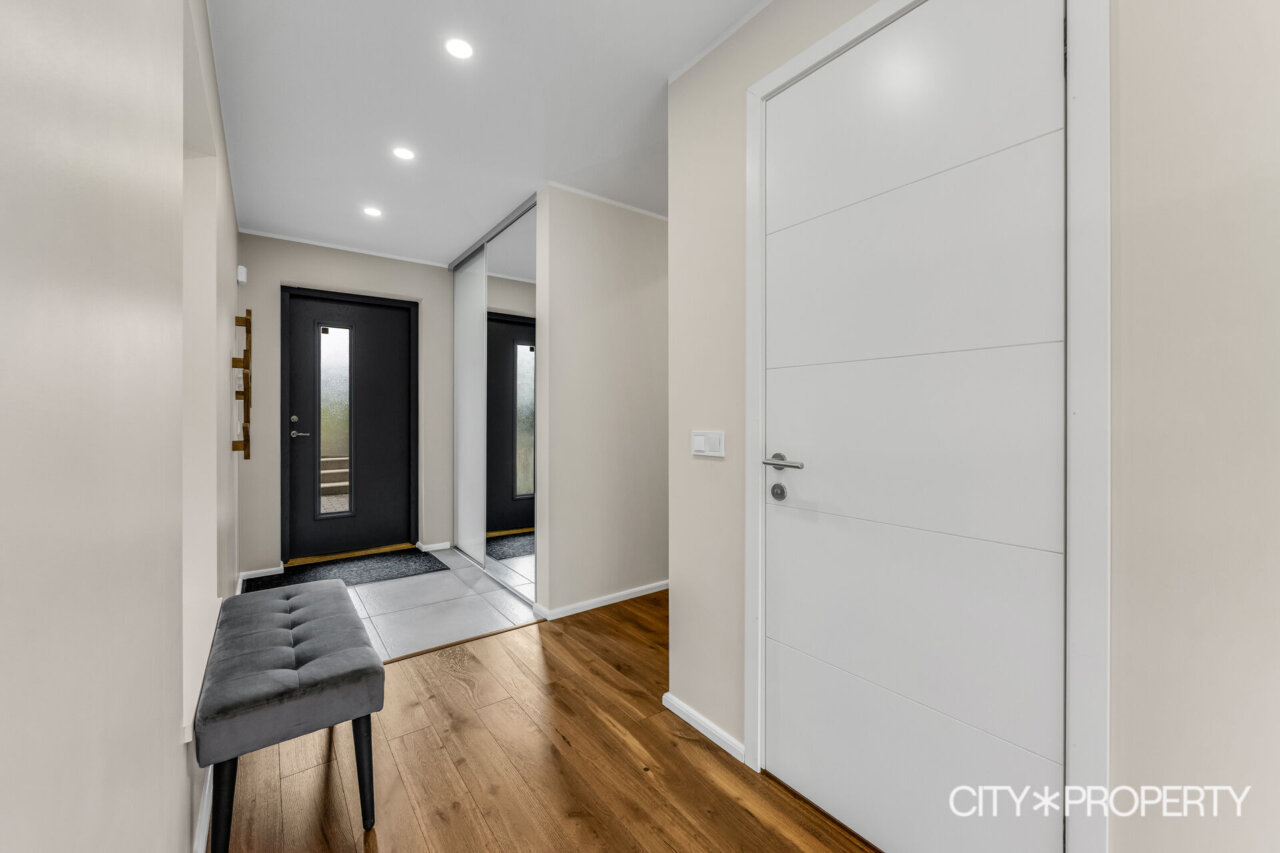 Välisukse esine osa esiku põrandast on plaaditud. Esikus on mahukas sisse ehitatud garderoobikapp.