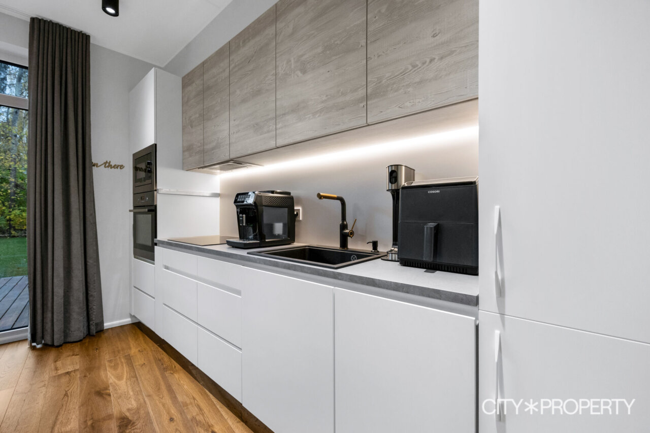Köögi poolel on parajalt ruumi ning ilus kvaliteetne köögimööbel sisaldab kogu vajaliku integreeritud tehnikat (pliit, ahi, nõudepesumasin, kubu, külmkapp -köögitehnika Electrolux).