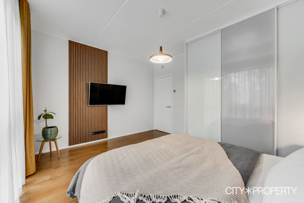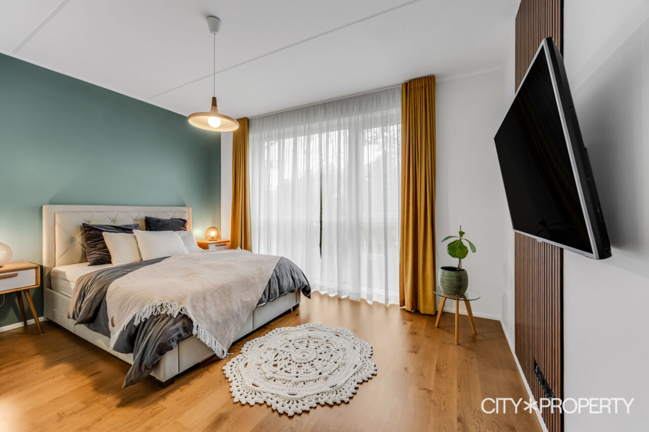 Master bedroom – ilusa metsavaatega, olemas on mahukas sisse ehitatud garderoobikapp. Lisaks võib sisse jääda ka ülejäänud magamistoa mööbel (v.a TV).