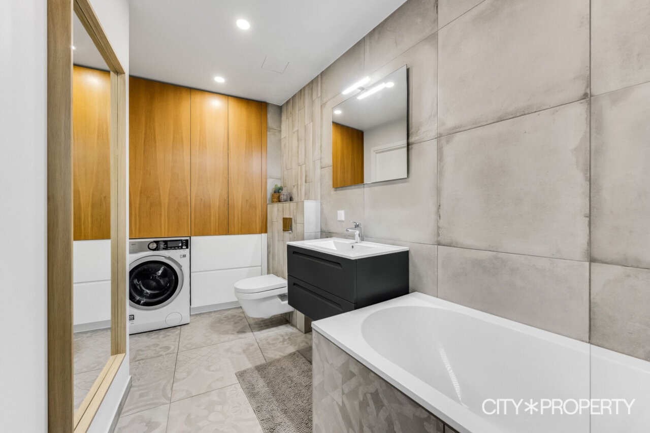 Teisel korrusel on avar, aknaga vannituba koos vanni ja tualetiga. Sisse ehitatud seinakapp ning kuivatiga pesumasin.