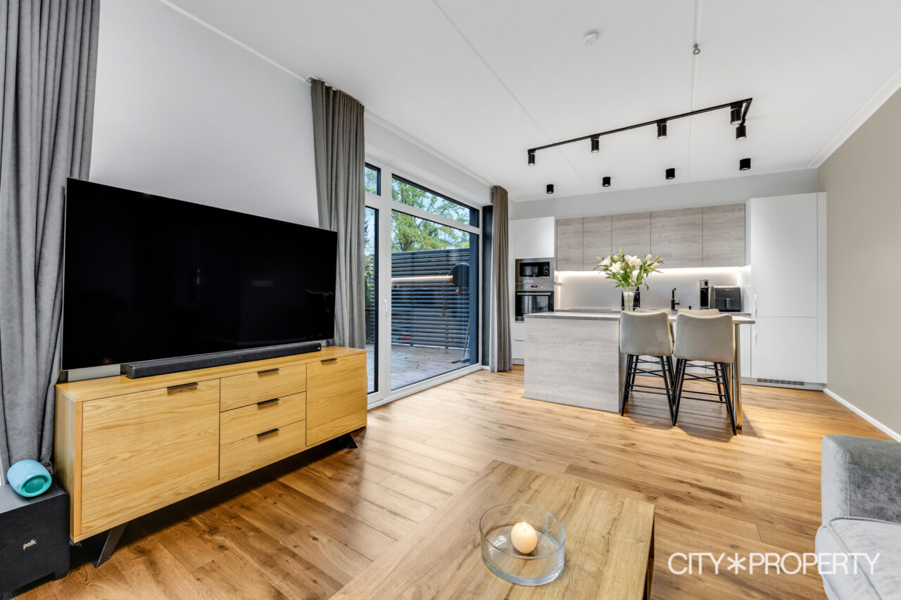Elutoas ja köögis on suured maast laeni aknad ning pääs terrassile ja hoovi.
