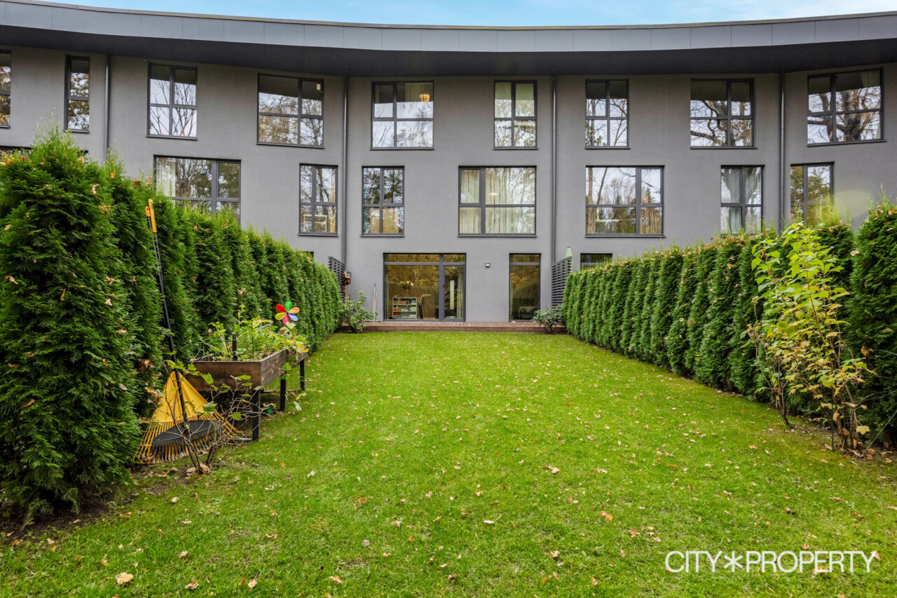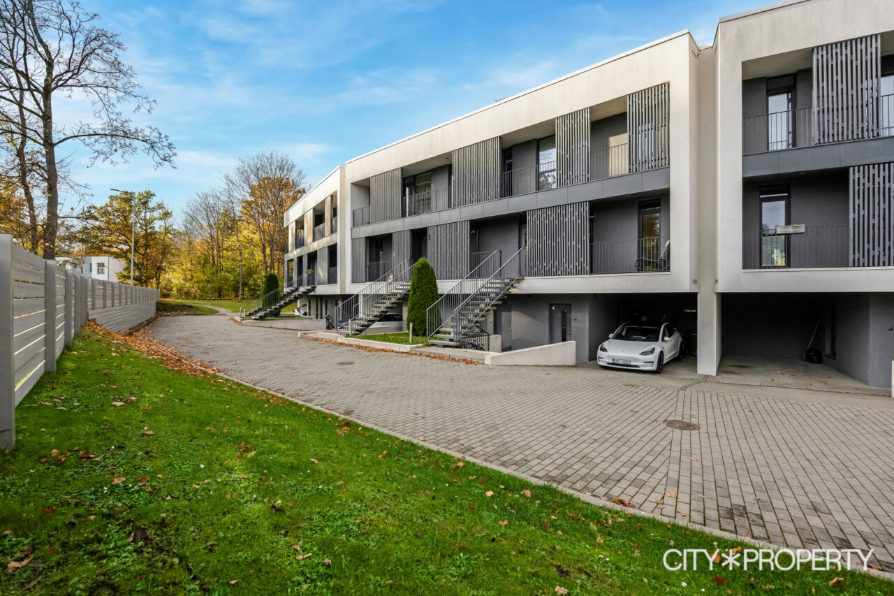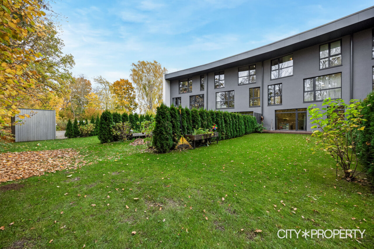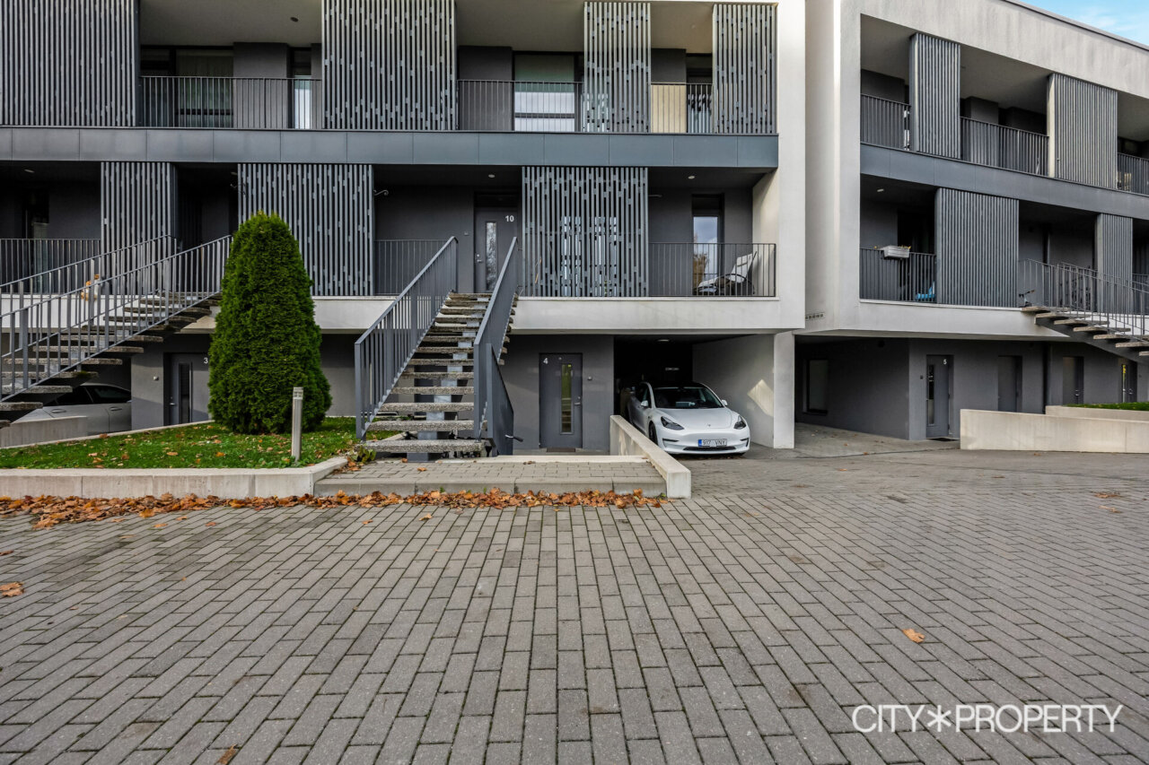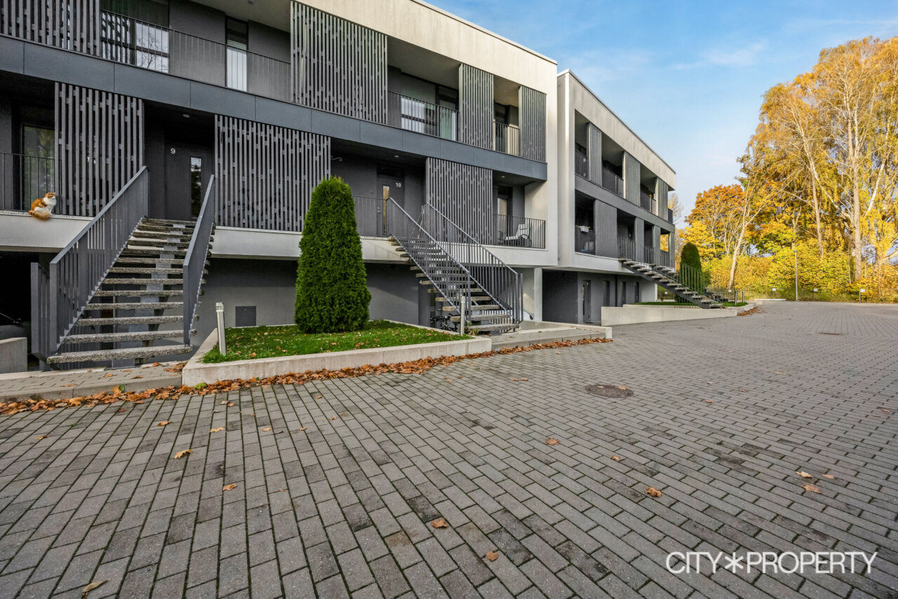 Maja tagumine hoovi osa koosneb ridaelamubokside isiklikest aedadest, maja küljel on kuurid ja parkimisala, kus on ka paar külaliste kohta. Maja eest on kõikidel korteritel eraldi sissepääsud ning esimese korruse kodude juurde kuuluvad parkimiskohad uste kõrval.