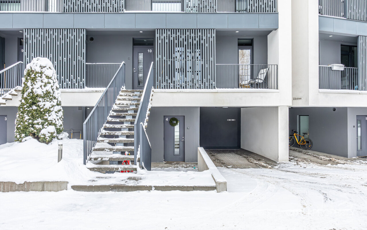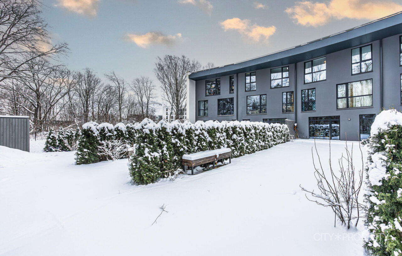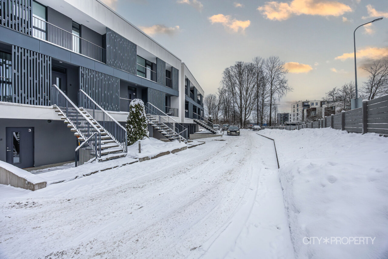 Maja tagumine hoovi osa koosneb ridaelamubokside isiklikest aedadest, maja küljel on kuurid ja parkimisala, kus on ka paar külaliste kohta. Maja eest on kõikidel korteritel eraldi sissepääsud ning esimese korruse kodude juurde kuuluvad parkimiskohad uste kõrval.