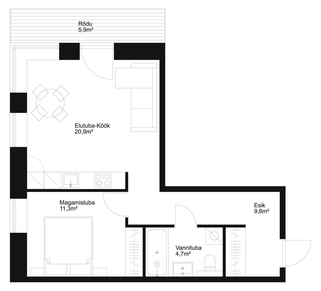 Korteri kohtkindel sisustus, tehnika, valguslahendused ja aknakatted sisalduvad müügihinnas. Lahtine tarbemööbel, seinapildid ja aksessuaaride osa on eraldi kokkuleppel vastavalt soovile.