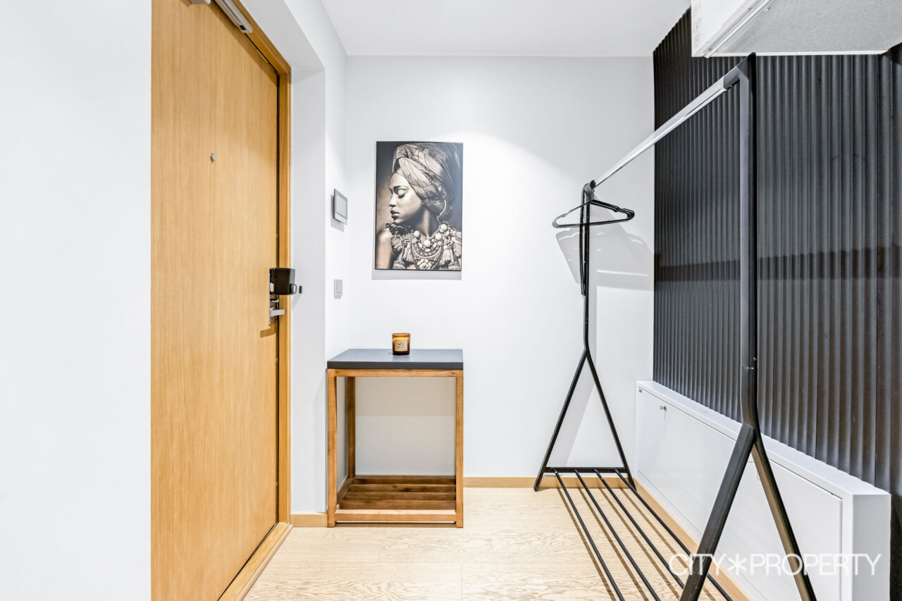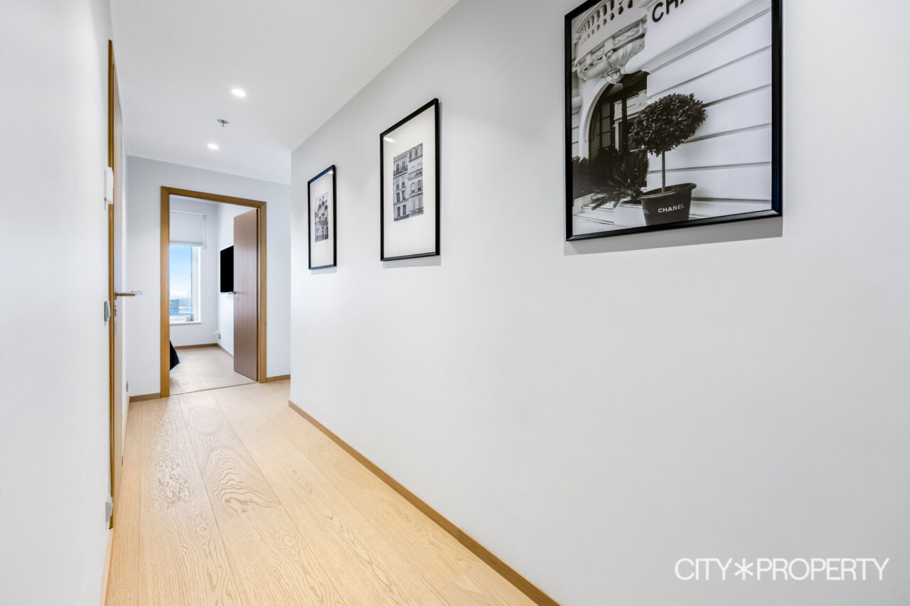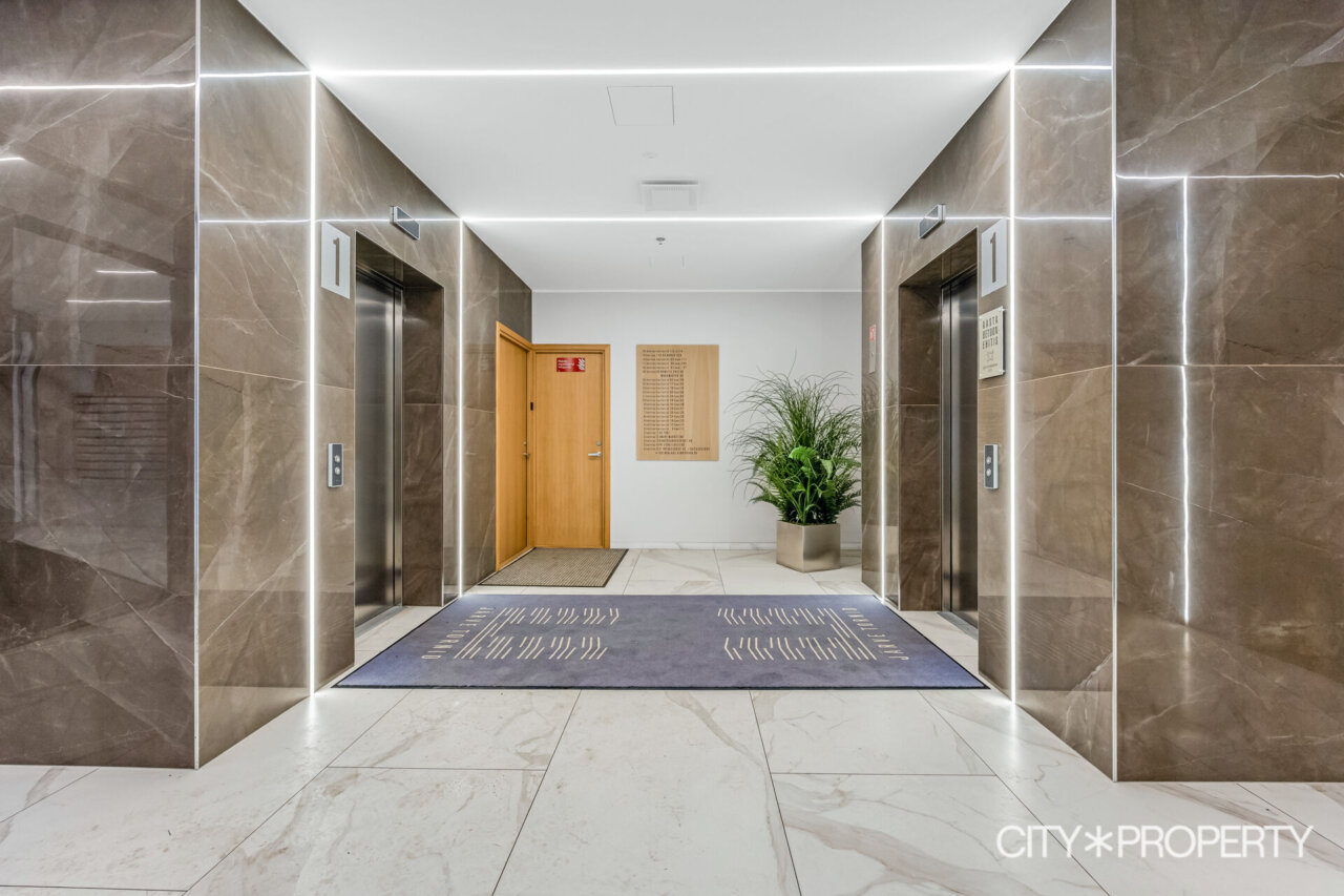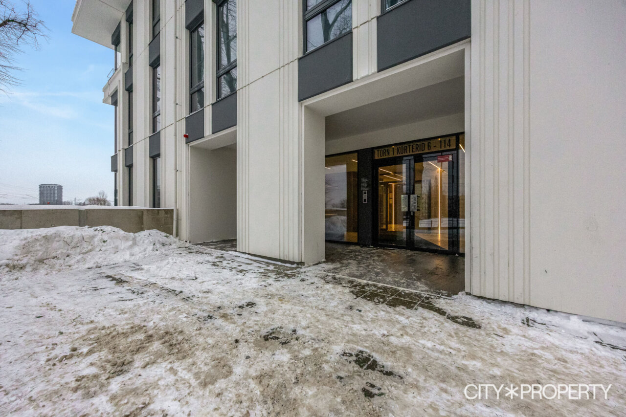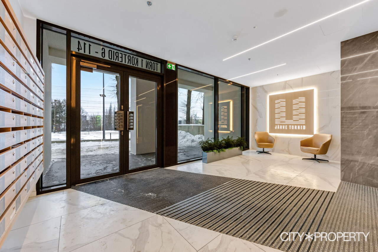 Müüdav korter asub tagumises Tornis nr. 1. Sissepääs viib läbi eksklusiivselt kujundatud fuajee ja kasutusel on kaks lifti. Välisukse avamiseks on kaamerapildiga fonoluku ekraan.