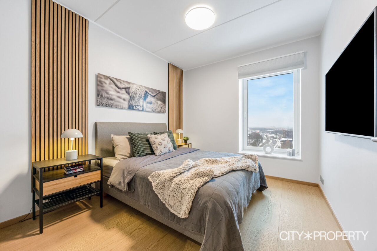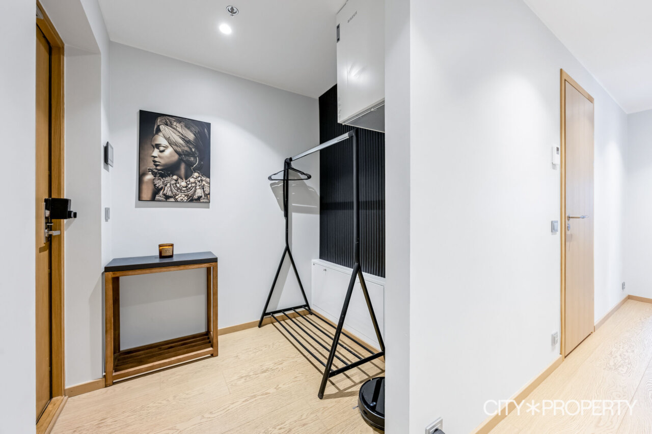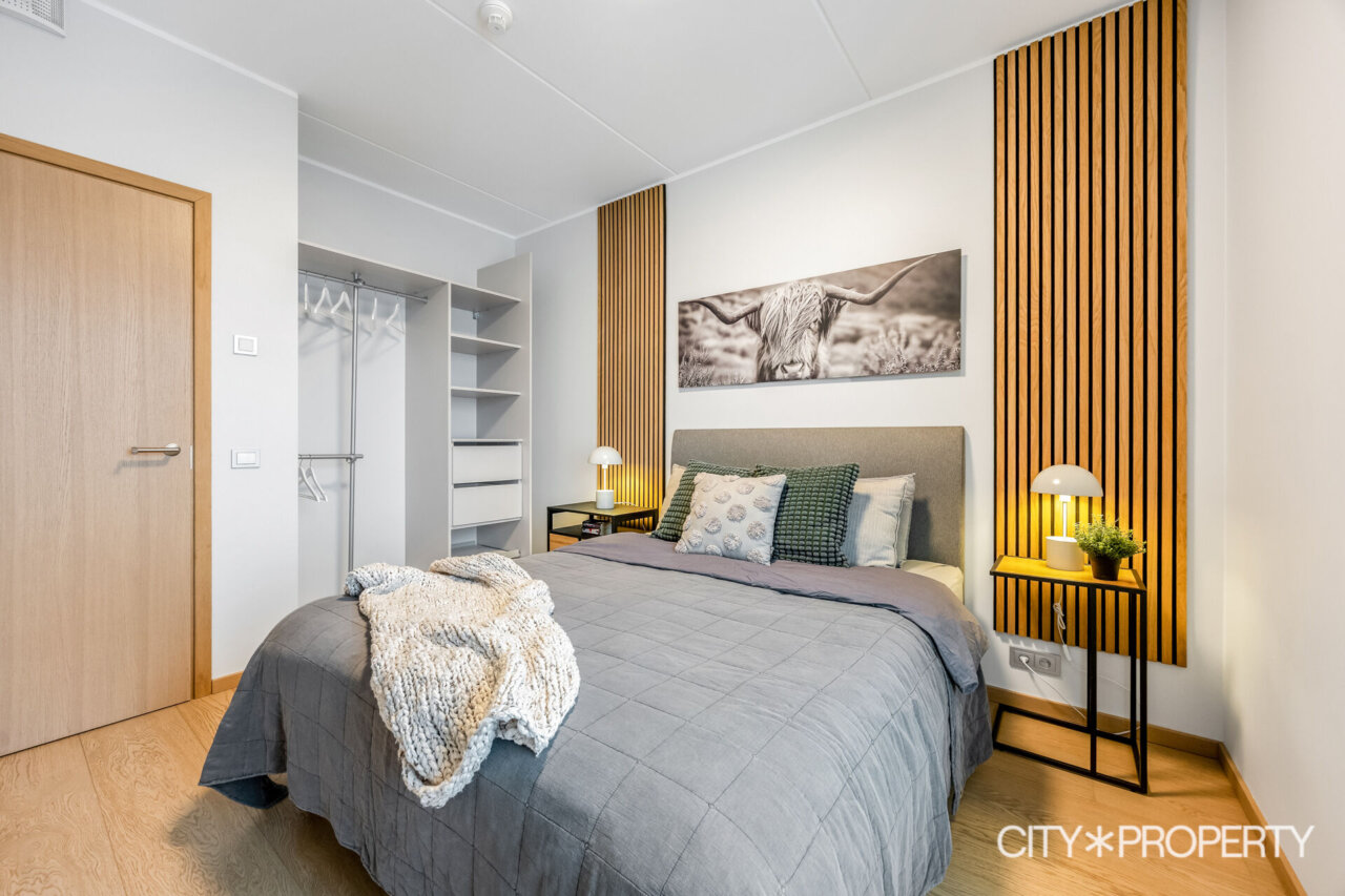 Ruumid on sisustatud kaasaegselt ja maitsekalt, põrandaid katab heledast tammest laudparkett, seinad on värvitud helehallides toonides. Esikus on seinasüvend, kuhu on võimalik planeerida garderoob. Magamistoa garderoobikapile on soovi korral võimalus ette tellida uksed. Magamistoa taustaseinas on trendikad puitpaneelid, mis harmoneeruvad samas koloriidis siseustega.