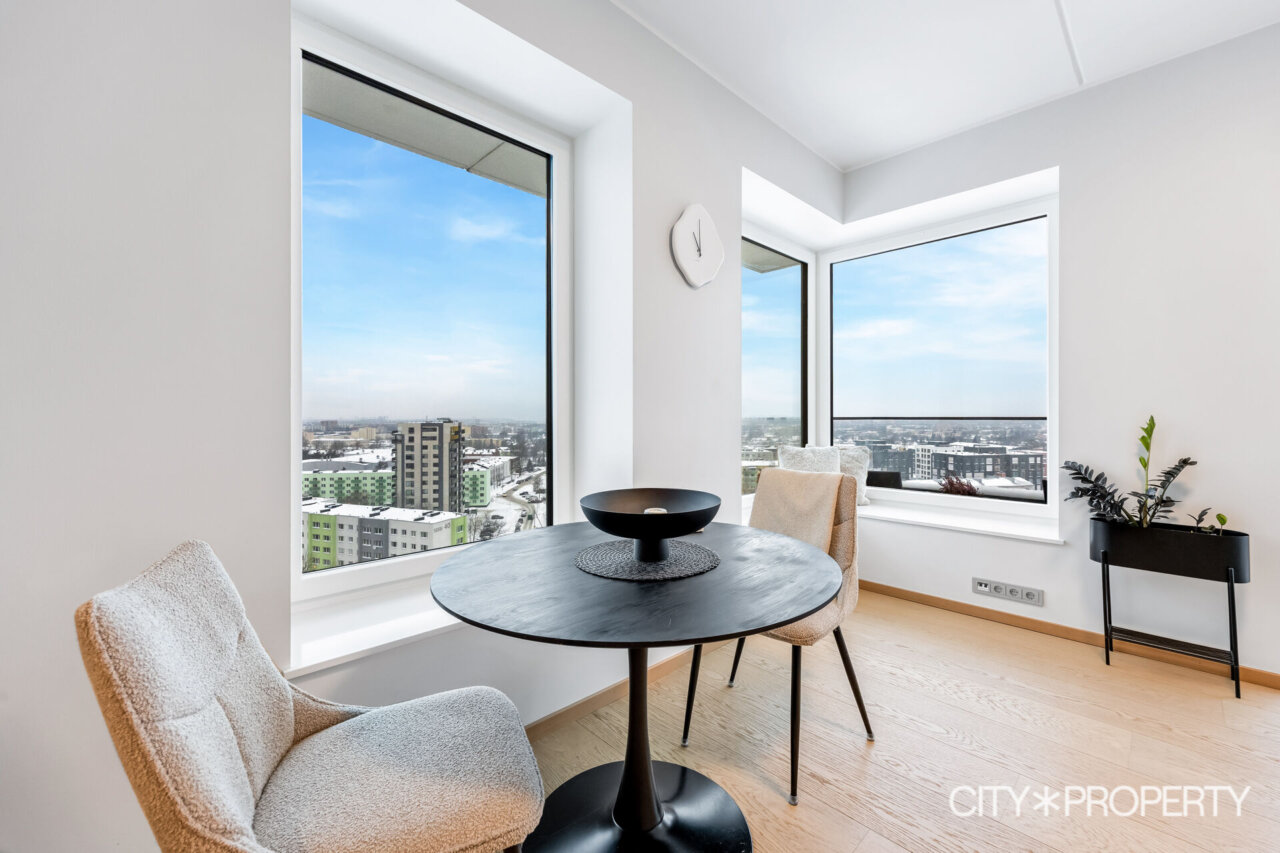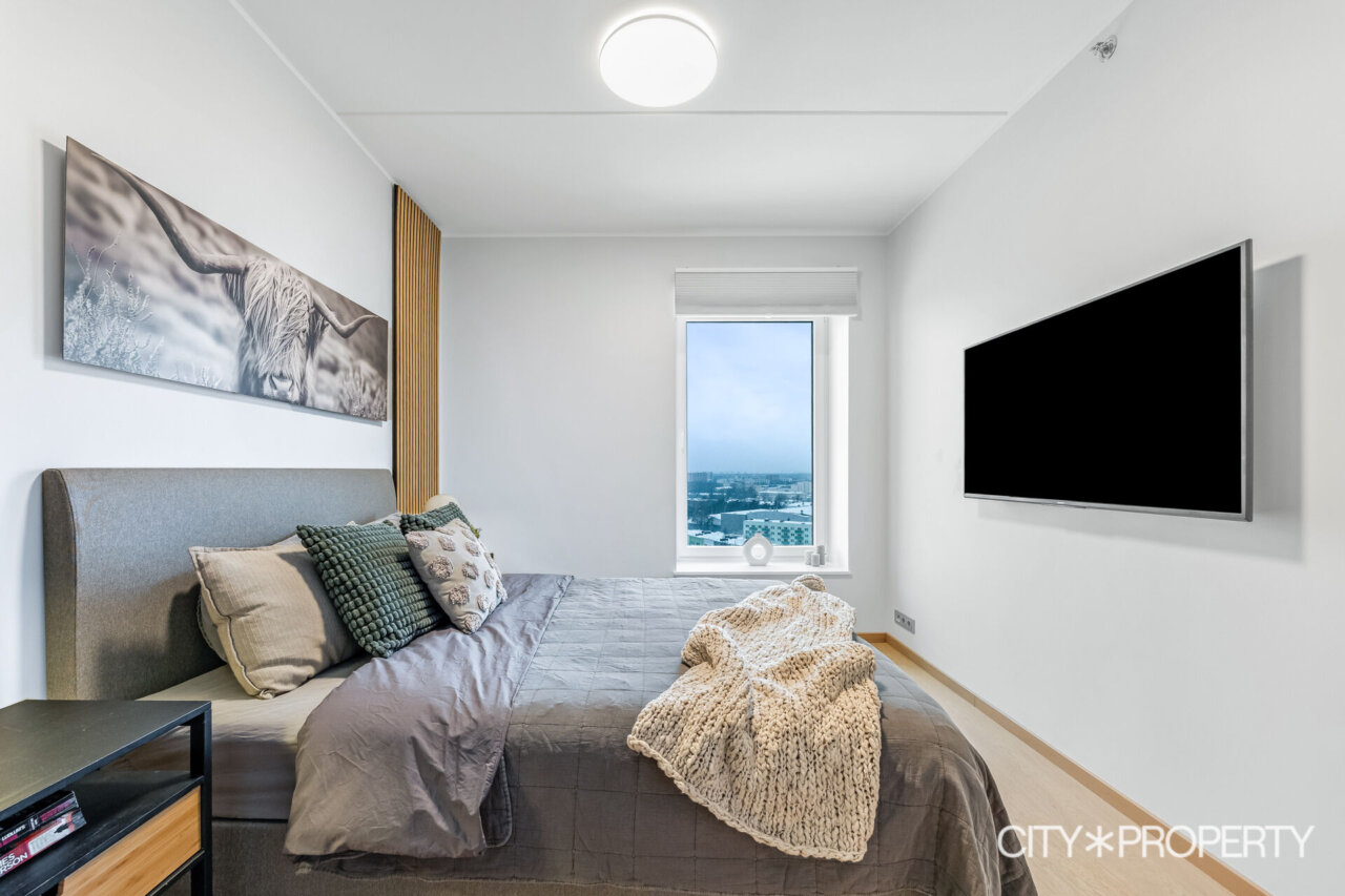 Moodsa interjööriga ja rohke aknapinnaga nurgapealne korter Järve Tornide 11-ndal korrusel pakub erakordseid vaateid Tallinna linnale ja merele. Elutoast saab astuda kogu korteri laiusele panoraamrõdule ning jälgida ümbrust mõnusast kõrgusest. Korteri elupinna moodustavad avar elutuba koos avatud köögiga ning magamistuba.