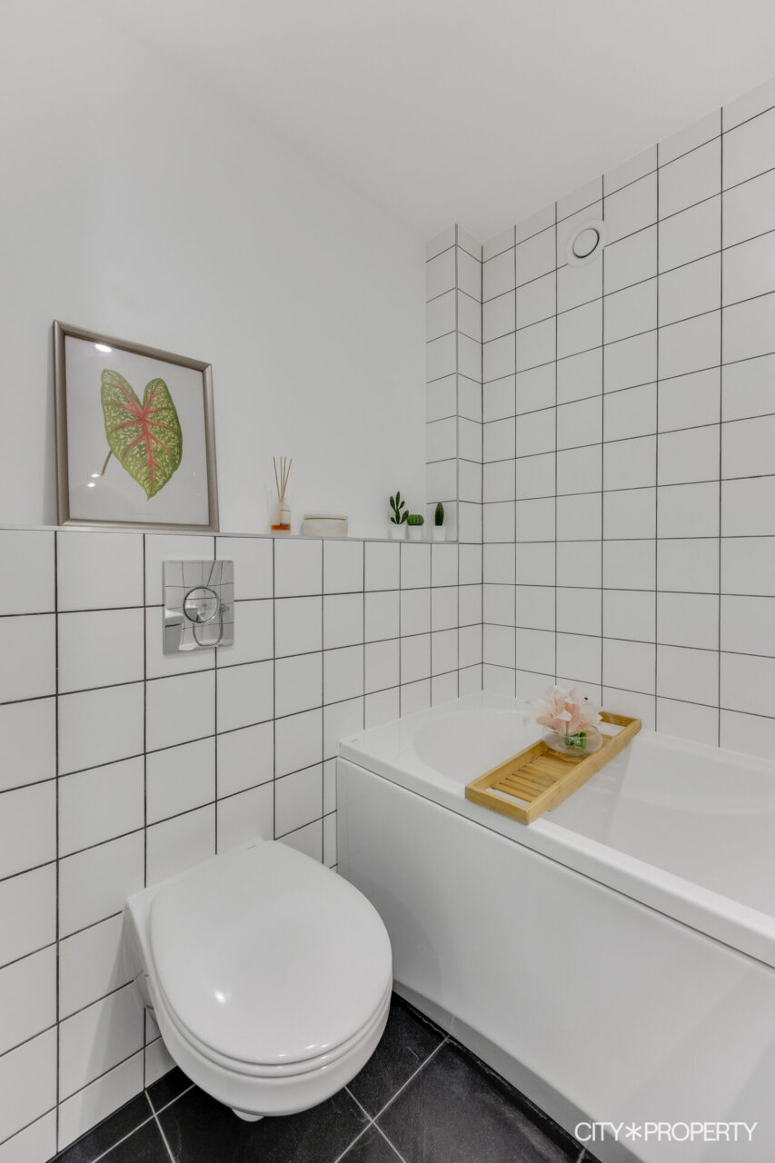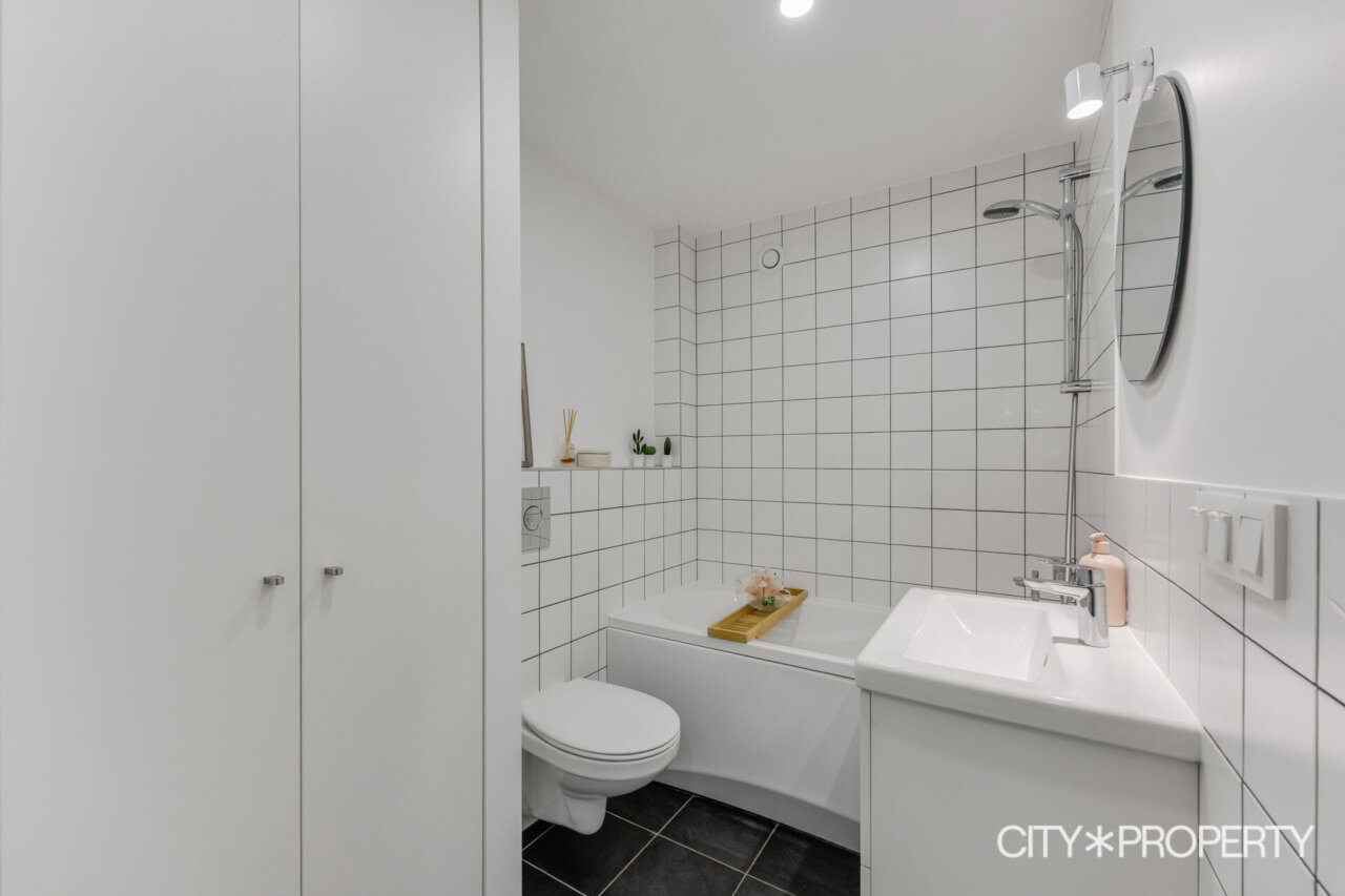 Vannituba ja tualett on põrandaküttega, vannitoas on vann ja asjade hoiustamiseks mahukas seinakapp.
