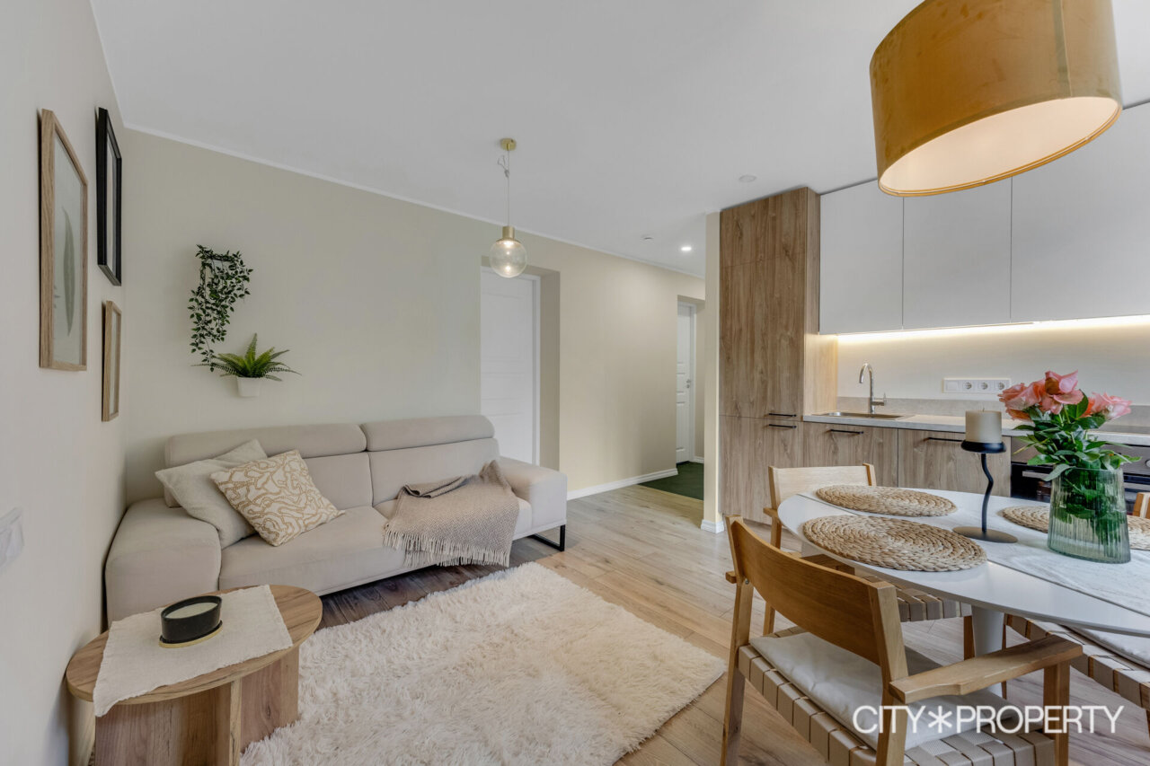 Planeering on praktiline – avatud köögiga elutoas on meeldivalt ruumi kõigele, mahutamaks nii mugava diivani kui täisväärtusliku söögilaua.