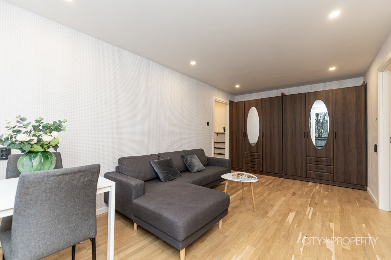 Elutuba ja köök asuvad eraldi. Köögis saab rahulikult süüa teha ja elutoas lõõgastuda ilma vastastikuste segajateta.