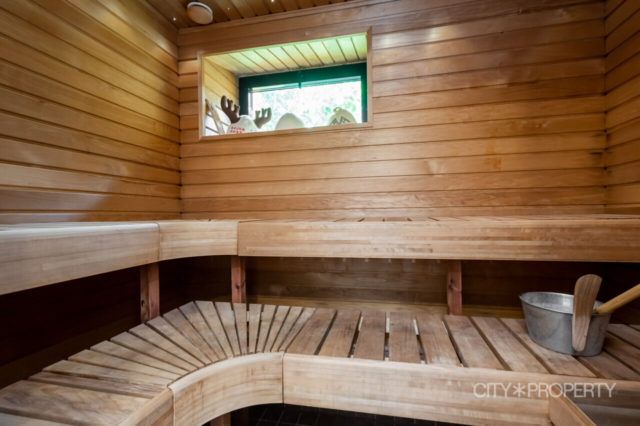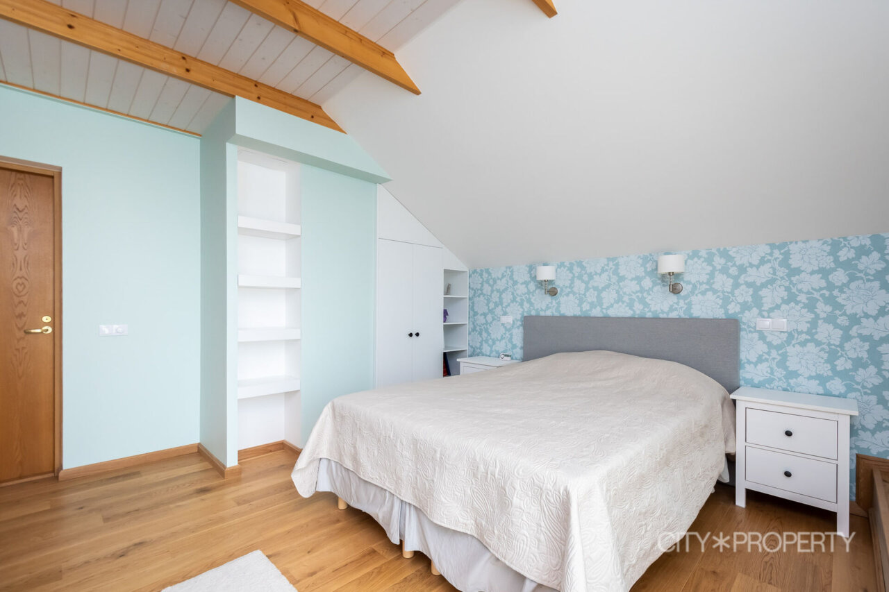 Sisekujundus on hele ja rahulik, luues avara ning meeldiva õhkkonna. Köögis on eritellimusel valmistatud köögimööbel koos integreeritud tehnikaga, mis jääb uuele omanikule alles. Akendeks on puit-alumiinium ja alumiiniumraamidel pakettaknad, siseuksed on puidust ja spoonitud. Põrandatel on naturaalne parkett. Vajadusel on võimalik kokkuleppel osa mööblist üle võtta.