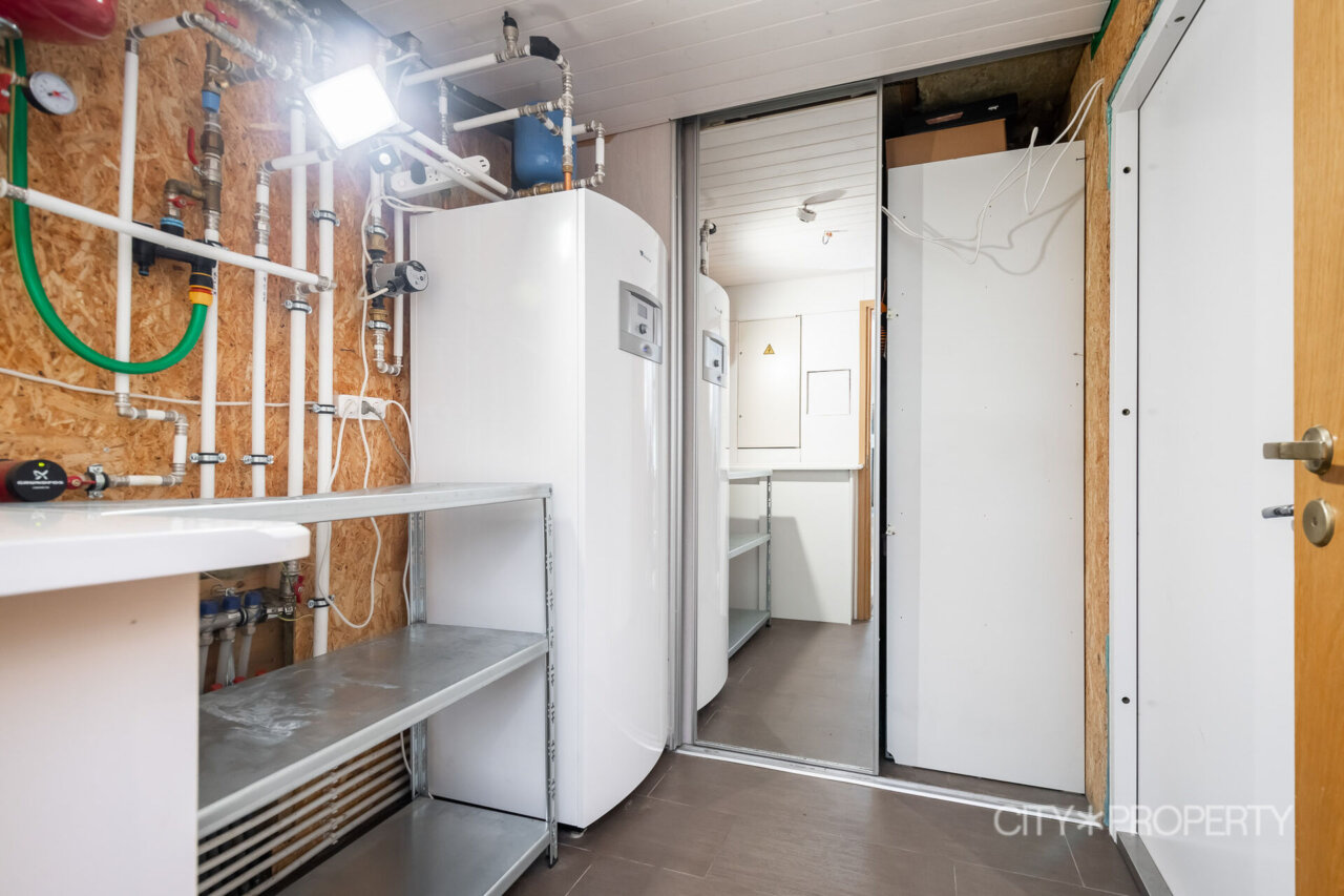 Maja kütab ökonoomne maaküte, mis on ühendatud põrandaküttetorustikuga kogu hoones. Teisel korrusel on täiendavalt õhksoojuspump ning köögis paikneb soojasalvestav pliit-ahi, mille kütmisel levib soojus ka ülemisele korrusele. Ventilatsioon on soojustagastusega, mis tagab värske õhu ja ühtlase sisekliima aasta ringi. Maja energiaklass on B ning igapäevased kulud on madalad.