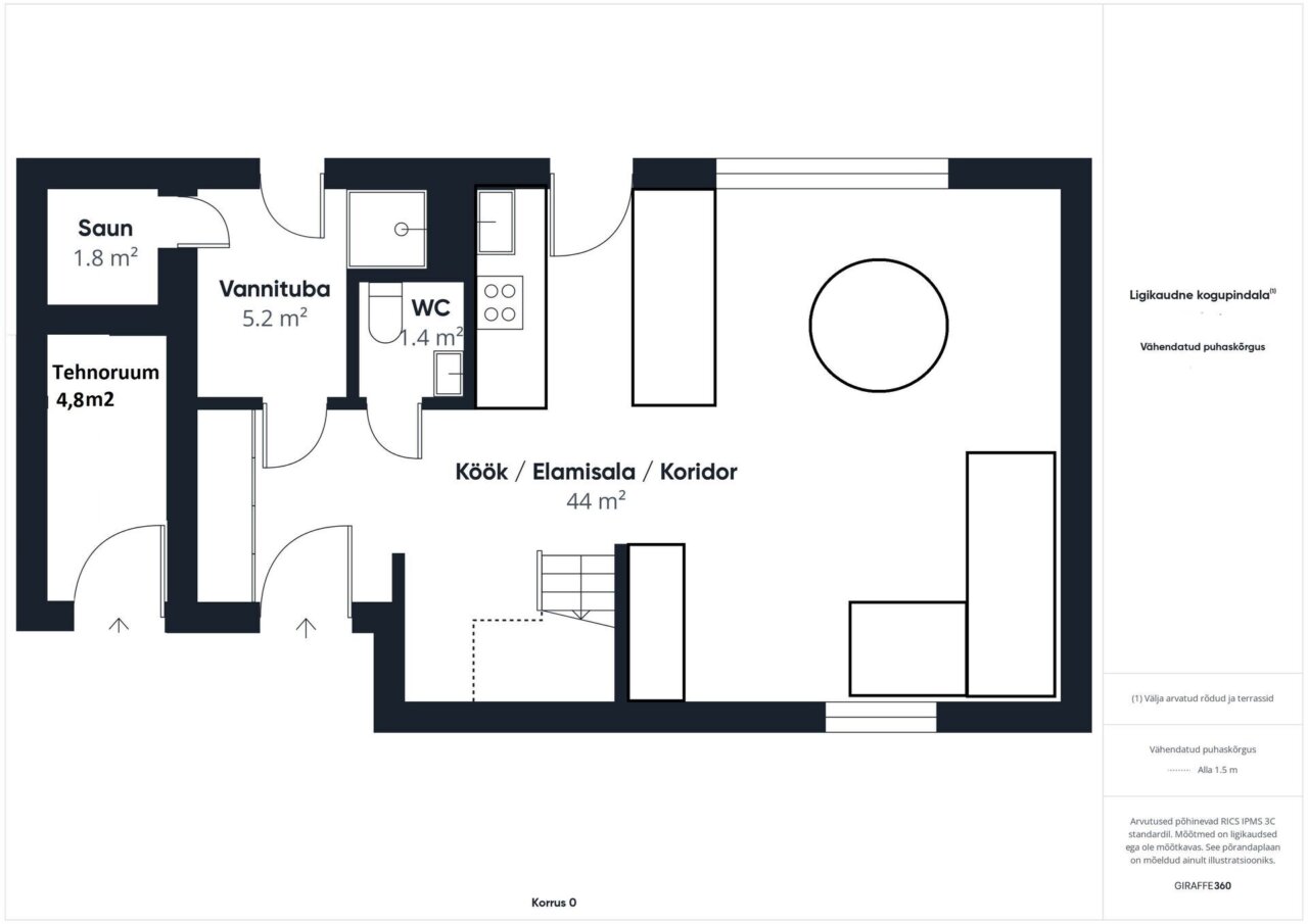 Küte: efektiivne vesi-radiaatorküte gaasikatla baasil, mis tagab ühtlase ja mugava sisetemperatuuri. Märgades ruumides on lisaks elektriline põrandaküte.