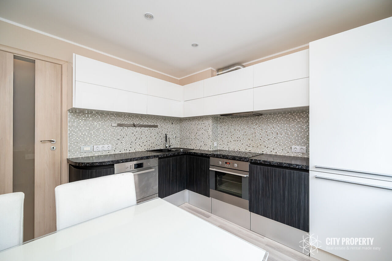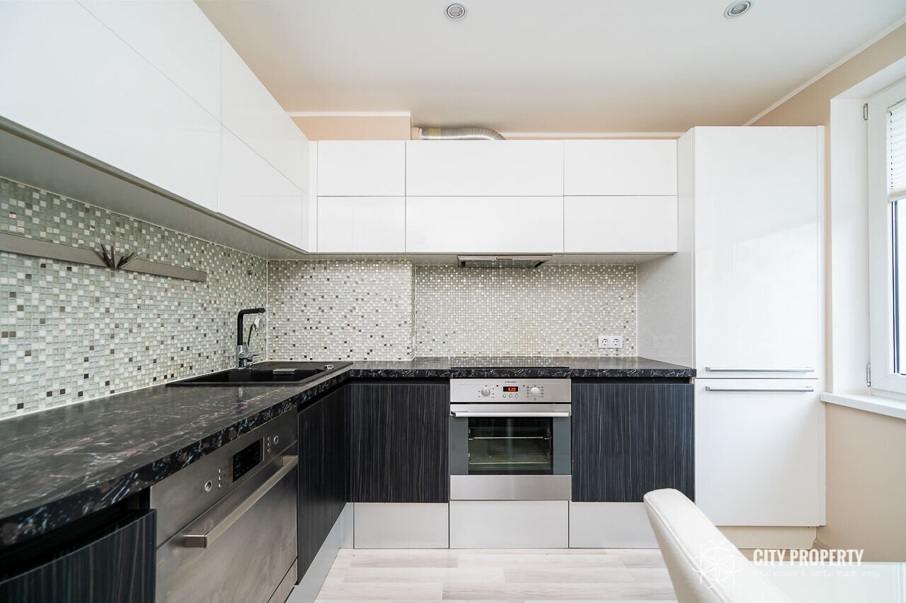 Müügi hinna sisse kuulub eritellimusel valmistatud köögimööbel koos integreeritud tehnikaga (keraamiline pliit, elektriahi, õhupuhasti, nõudepesumasin, külmkapp).