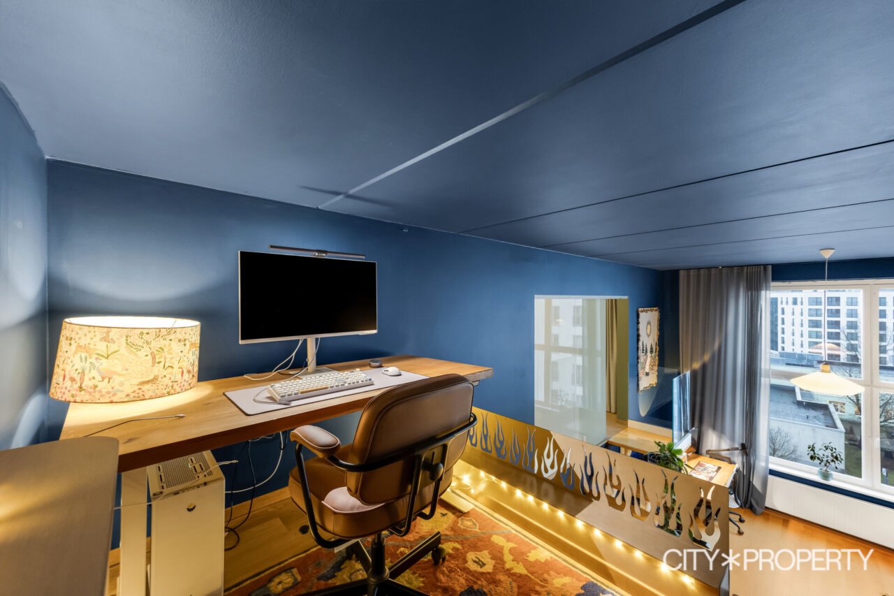 Korteri üldpind 80,5m2 koosneb elamispinnast 75,8m2 ja elutoa peal asuvast kõrgemast töönurgast 4,7m2.