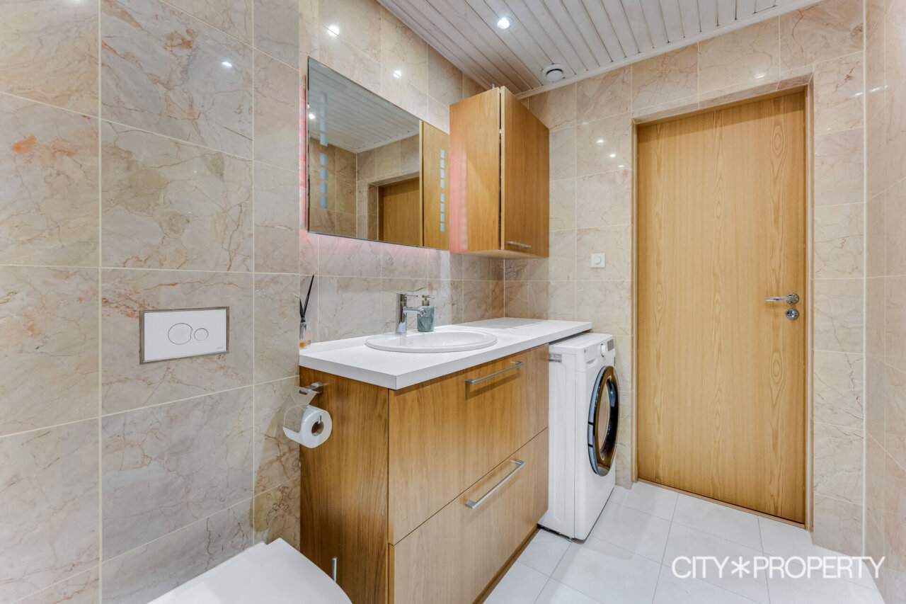 Tubade põrandaid katab naturaalne tammeparkett, wc/vannituba plaaditud. Köögis korralik köögimööbel AEG tehnikaga. Magamistoas ning esikus mahukad garderoobikapid.