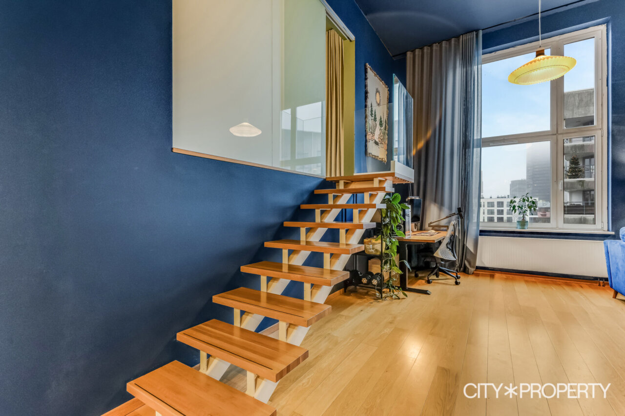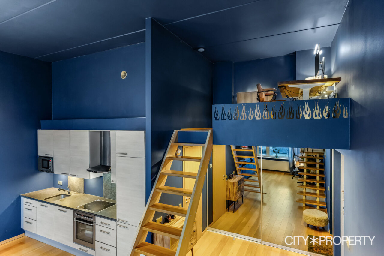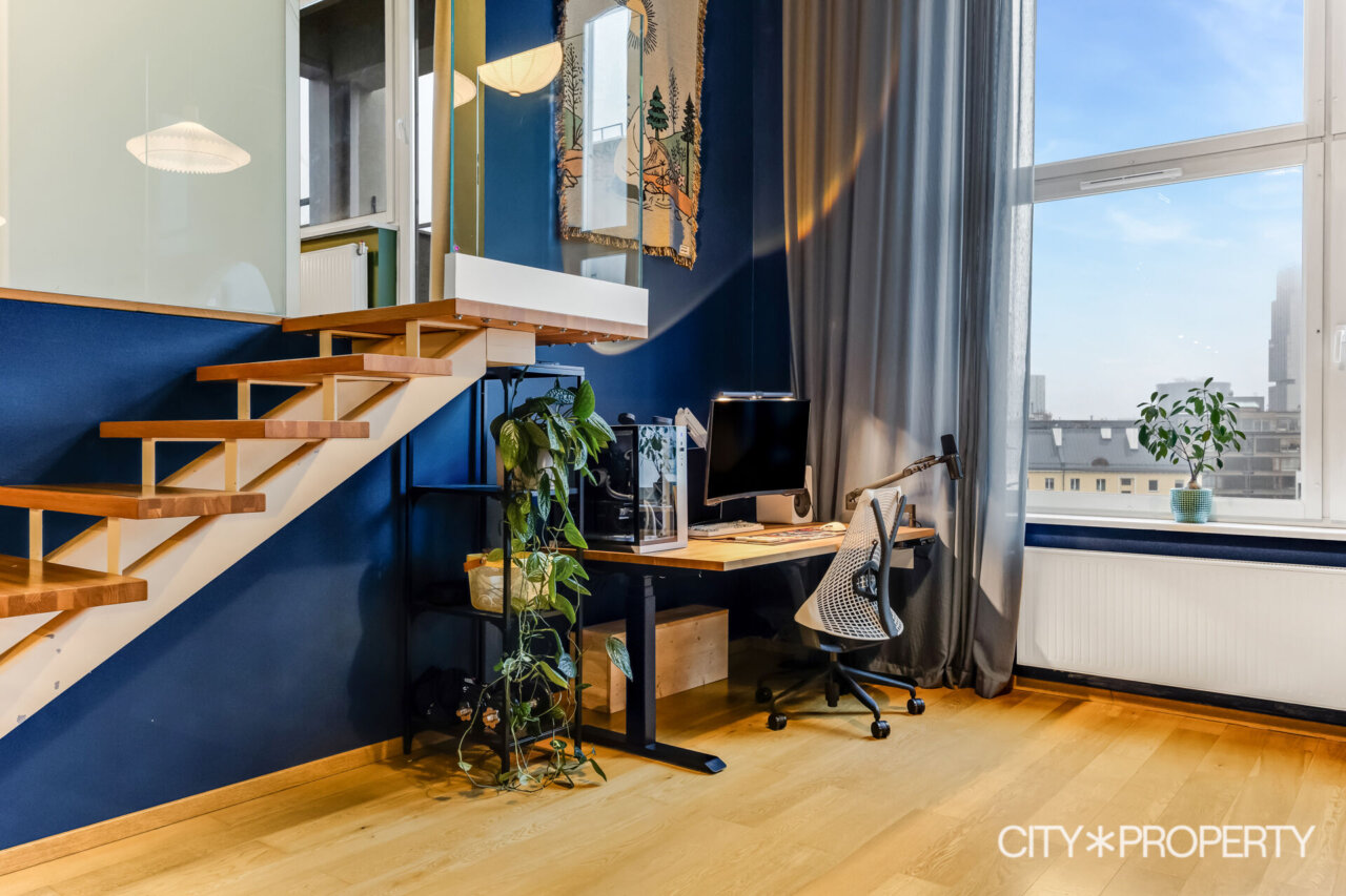 Müüa suure katuseterrassiga stuudiokorter südalinnas. Korter on väga valgusküllane ning avar. Koosseisu kuulub avatud elutuba/köök, pool korrust kõrgemal asuv avar magamistuba (19m2) ning vannituba. Lisaks viib elutoa osast trepp korrus kõrgemal asuvasse avatud töönurka (4,7m2). Magamistoast pääseb suurele 36m2 linnavaatega terrassile. Elutoas on kõrged laed (4m). Korteri aknad avanevad hoovi poole.