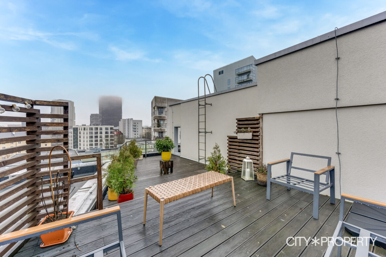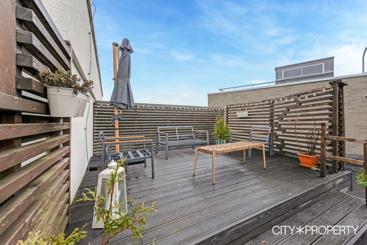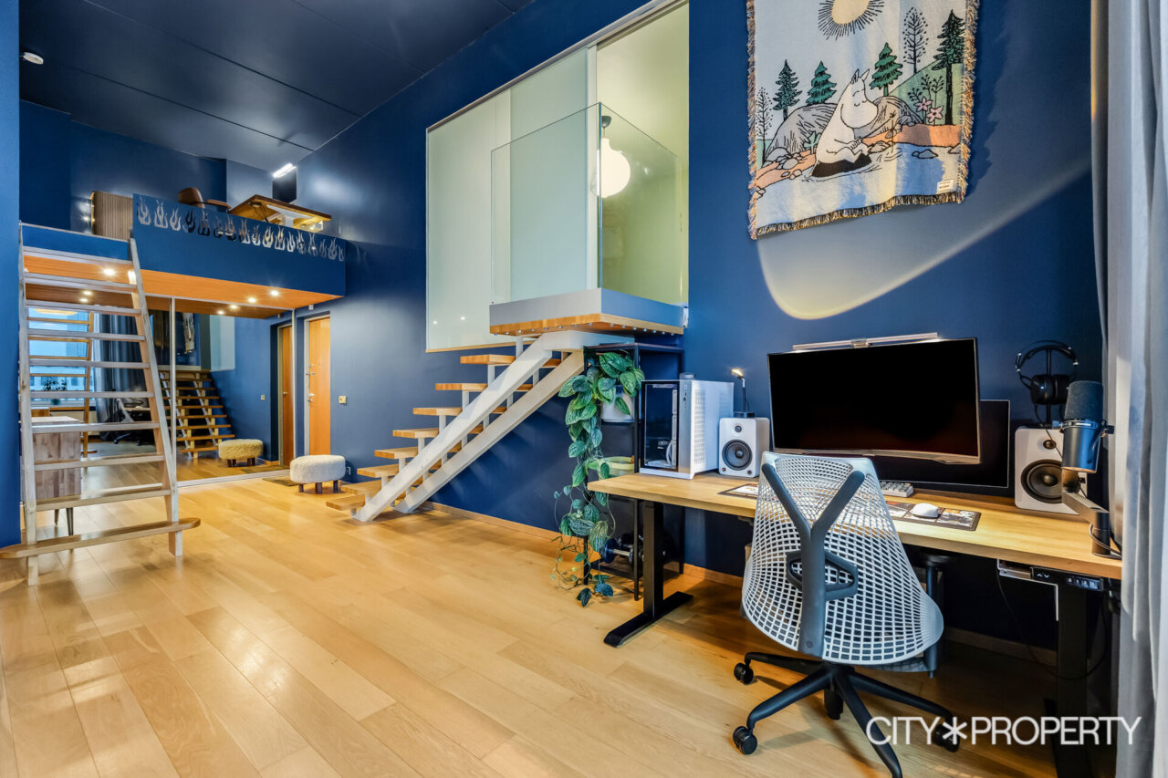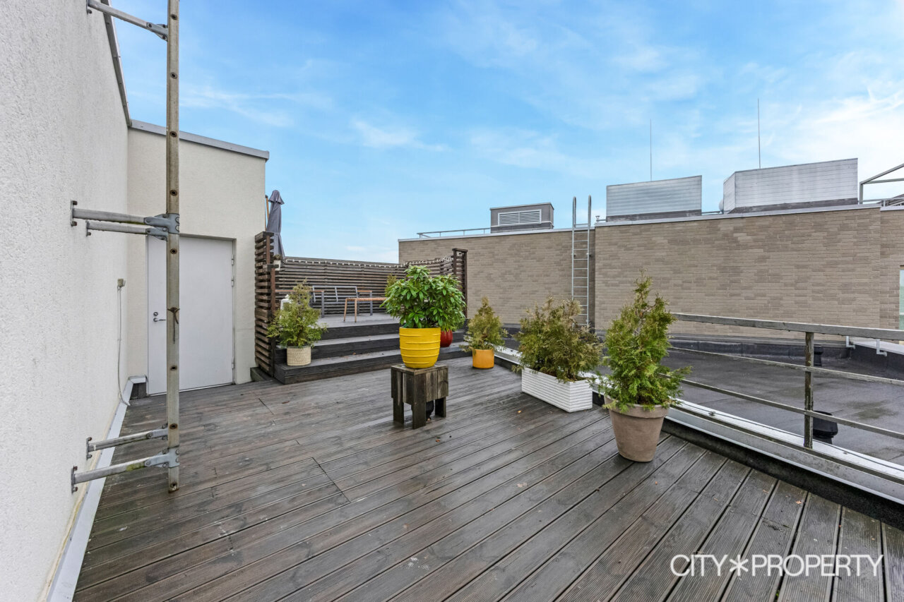 Müüa suure katuseterrassiga stuudiokorter südalinnas. Korter on väga valgusküllane ning avar. Koosseisu kuulub avatud elutuba/köök, pool korrust kõrgemal asuv avar magamistuba (19m2) ning vannituba. Lisaks viib elutoa osast trepp korrus kõrgemal asuvasse avatud töönurka (4,7m2). Magamistoast pääseb suurele 36m2 linnavaatega terrassile. Elutoas on kõrged laed (4m). Korteri aknad avanevad hoovi poole.