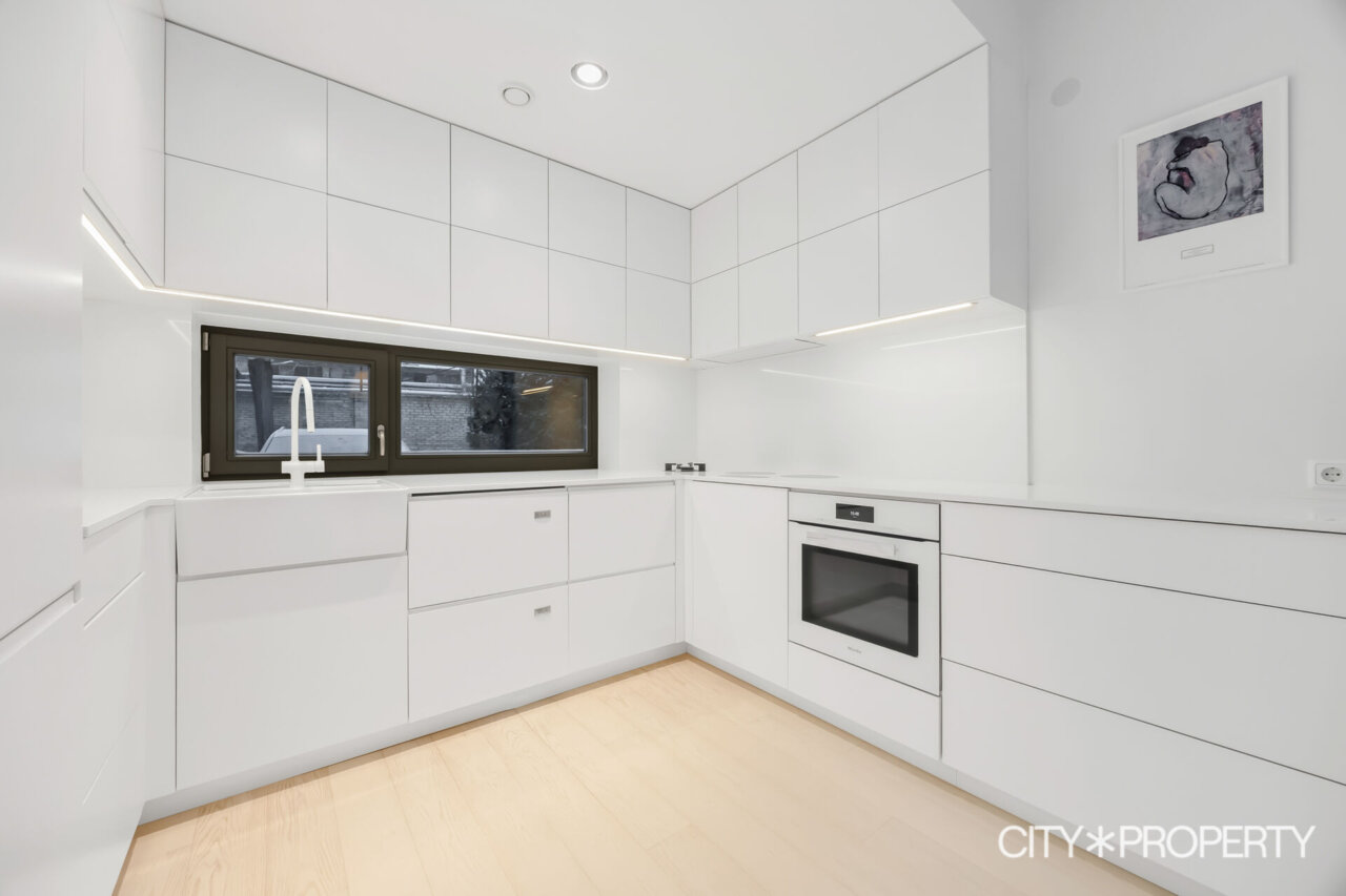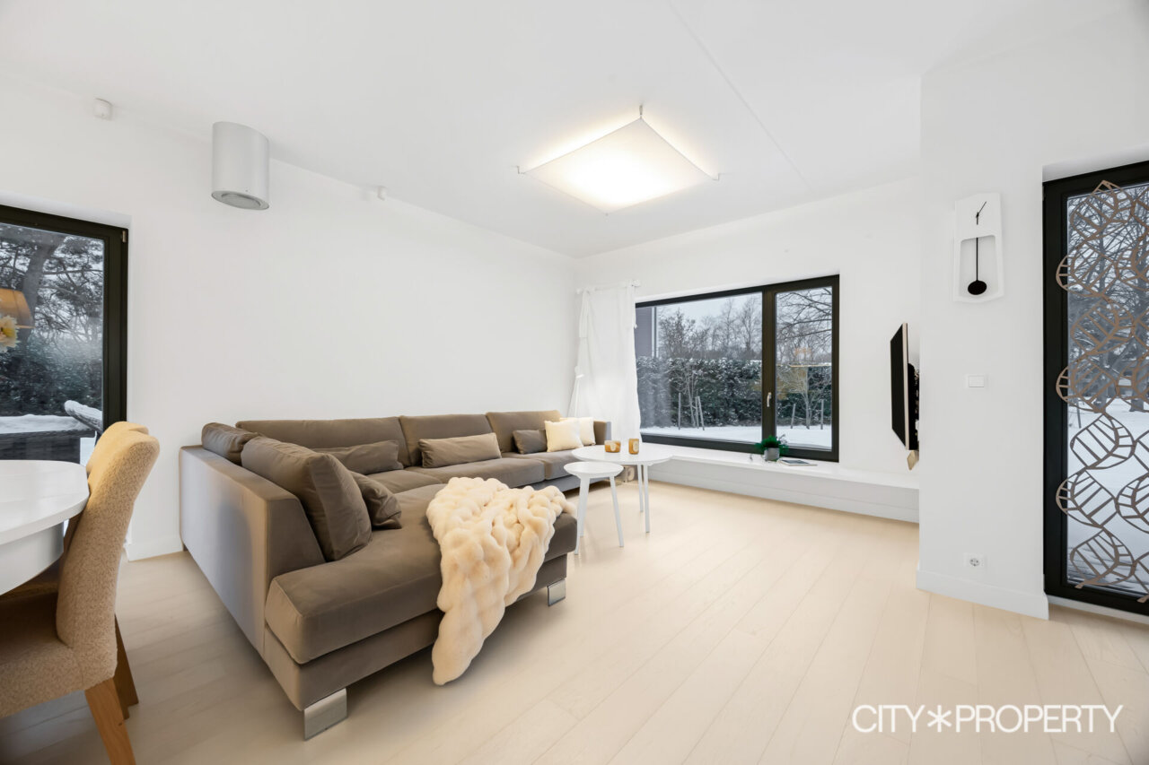 Maja on läbimõeldud planeeringuga, kus iga ruum on funktsionaalne ja praktiline. Siseviimistluses on kasutatud kvaliteetseid materjale ja sümpaatseid, heledaid värvitoone. Põrandaid katab naturaalneparkett. Vannitoas ja tualetis katab põrandaid keraamiline plaat. Suured avarad aknapinnad avanevad imeilusasse ja roherohkesse sisehoovi, maja ette ja küljepeale.