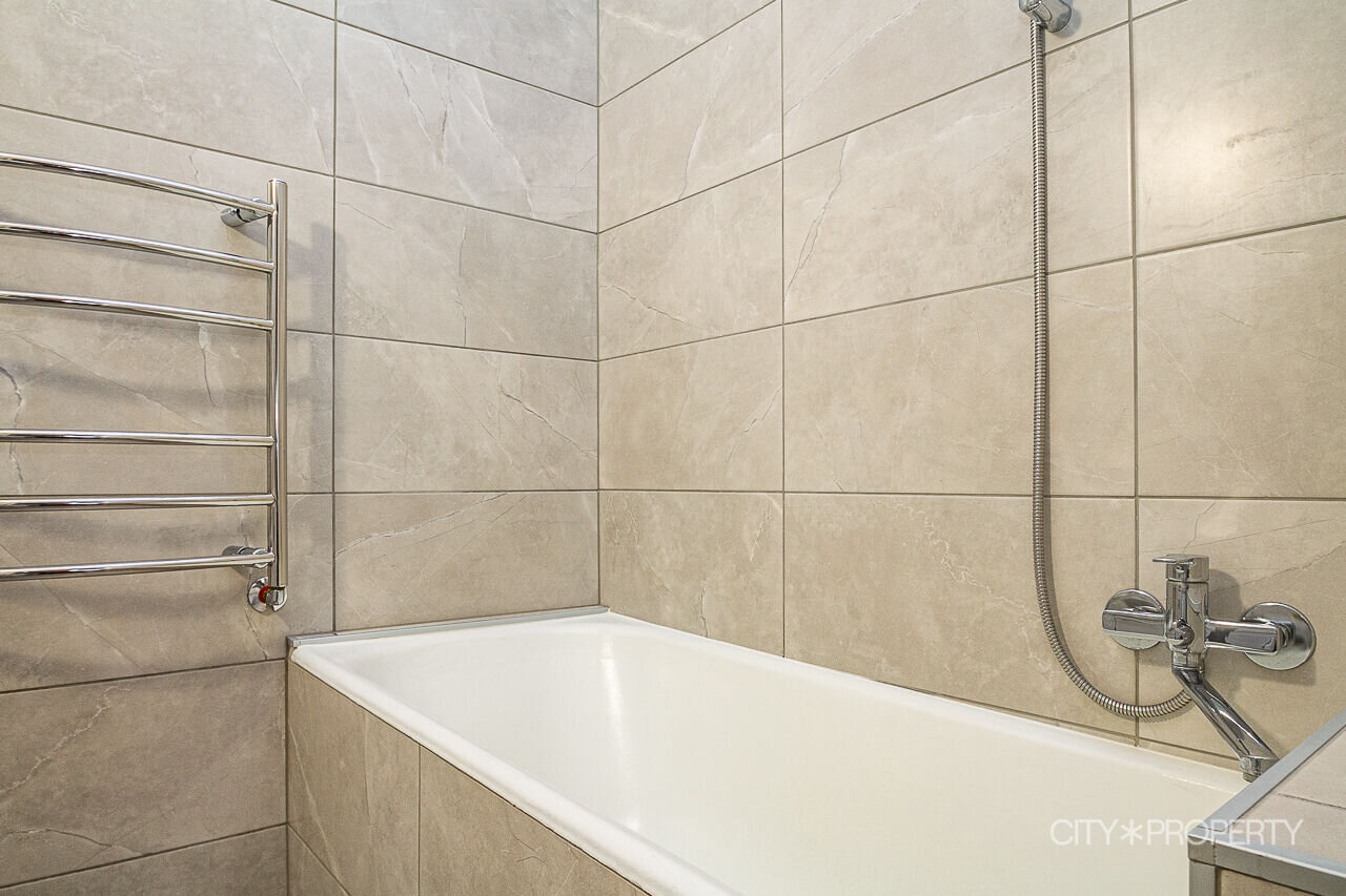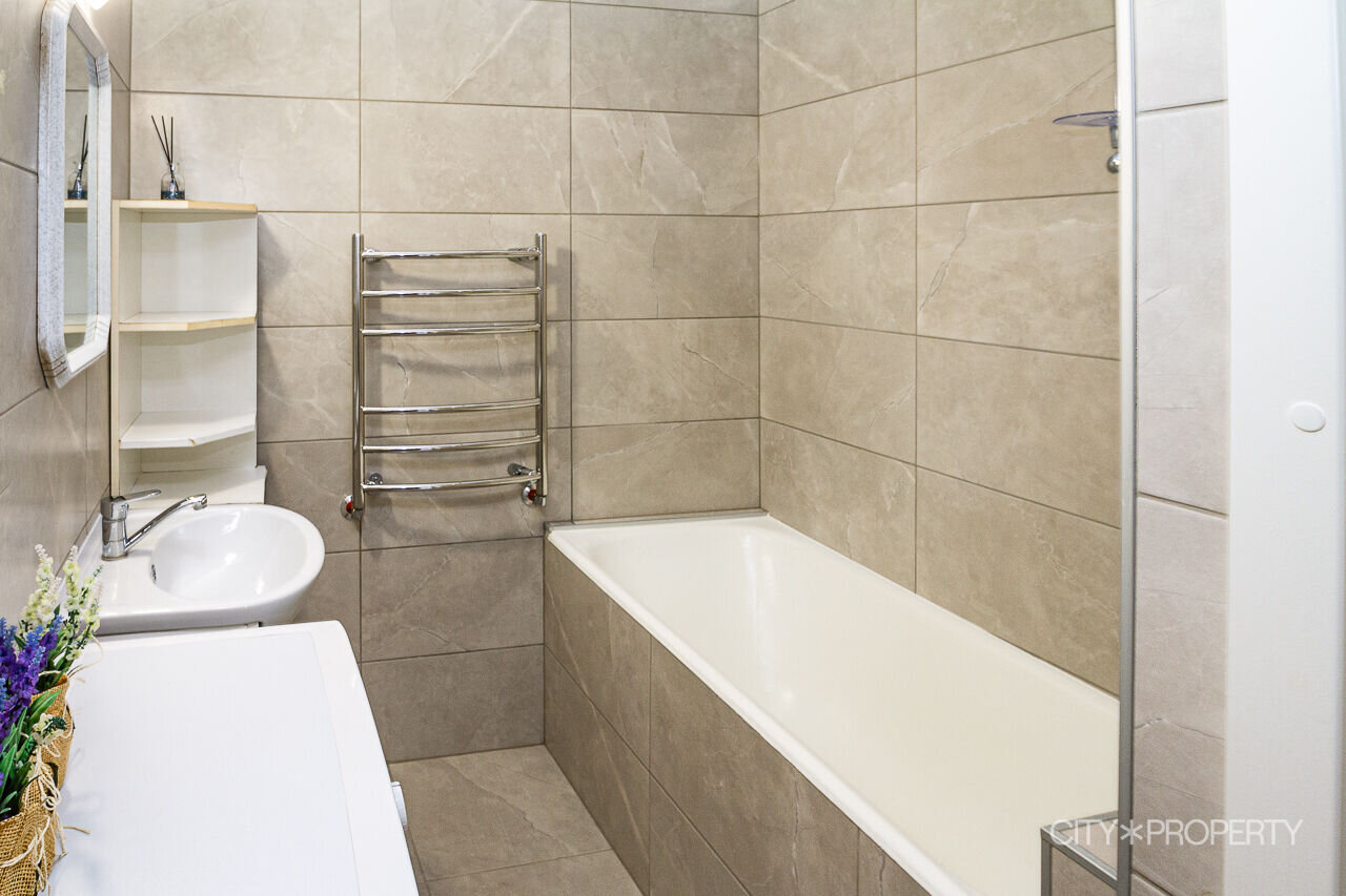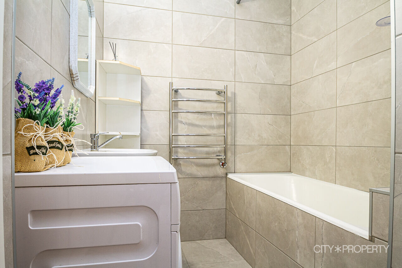 Vannituba on plaaditud, olemas nii vann kui dušš. Vannitoas ja köögis on tehtud uus remont, paigaldatud ka pesumasin. Korteri aknad avanevad vaikse sisehoovi poole — tänavamüra tuppa ei kostu. Asub kõrgel esimesel korrusel.