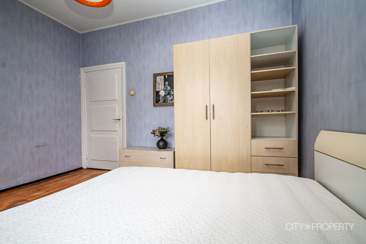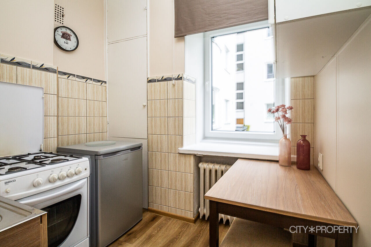 Köögis on olemas gaasipliit, külmkapp ja mikrolaineahi. Magamistuba on minimalistlik, kuid samas läbimõeldud ja funktsionaalne — suur garderoobikapp, mugav tugitool ning suur voodi uue ortopeedilise madratsiga. Elutoas on pehme veluurdiivan. Avarust lisavad suured aknad, mis toovad tuppa palju valgust ja loovad hubase meeleolu.