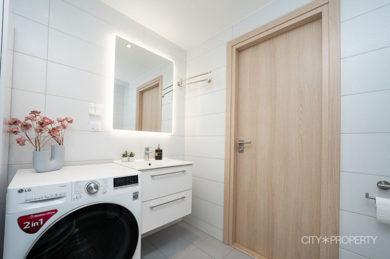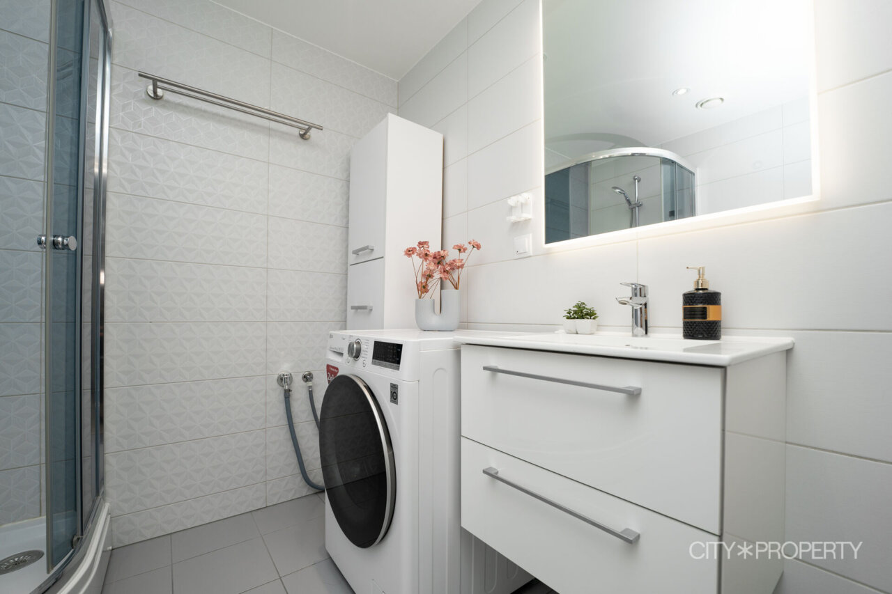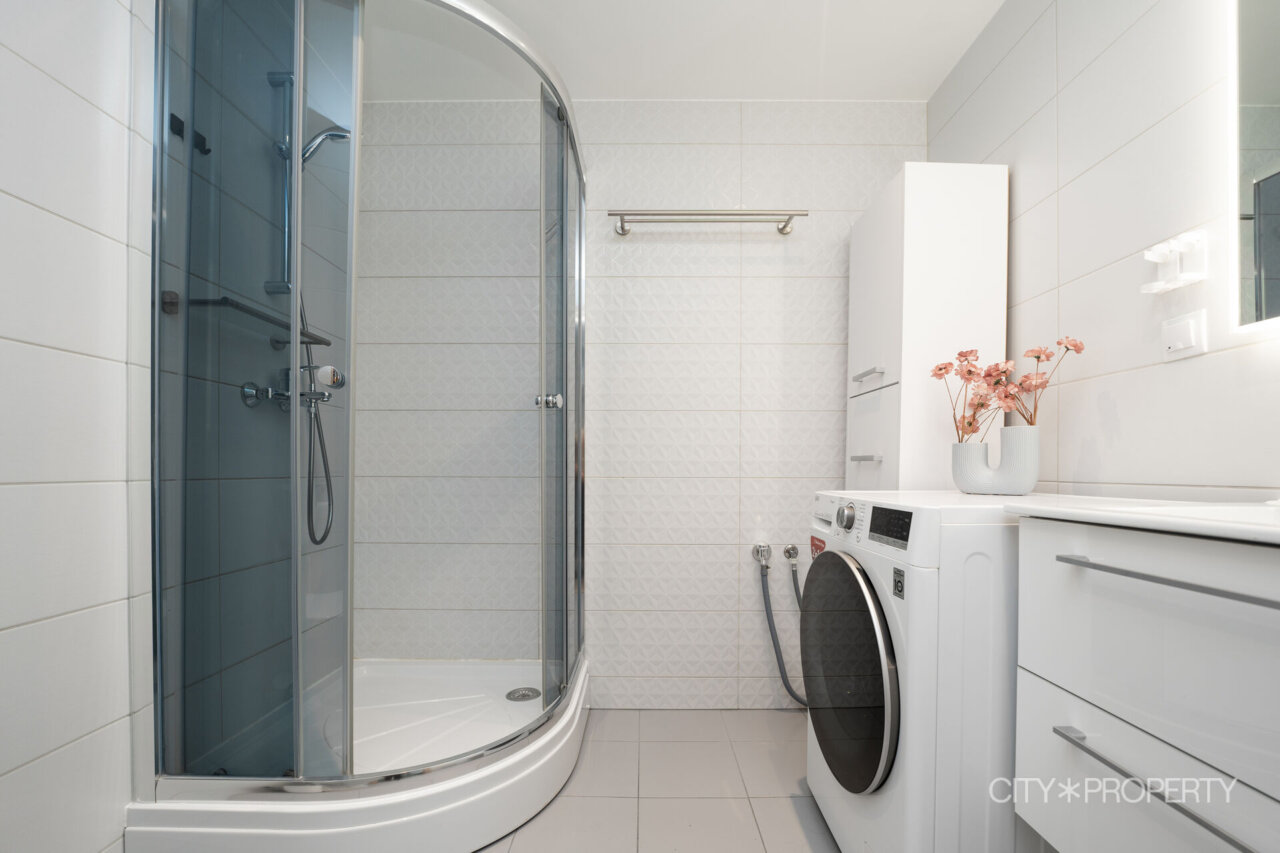Vannitoas on olemas dušikabiin ning vannitoamööbel.