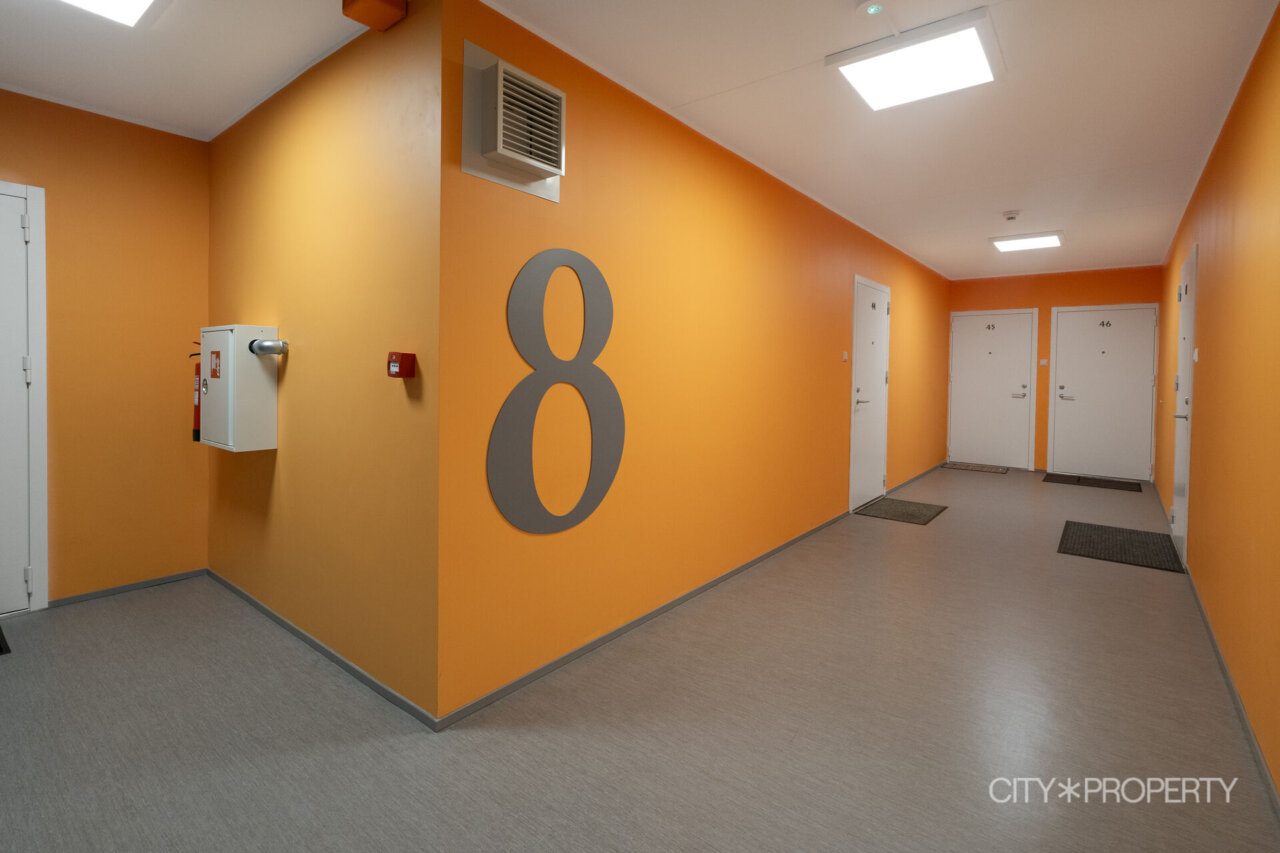 Põrandaid katab hele puitparkett. Korteri seinad on värvitud heledates neutraalsetes toonides.