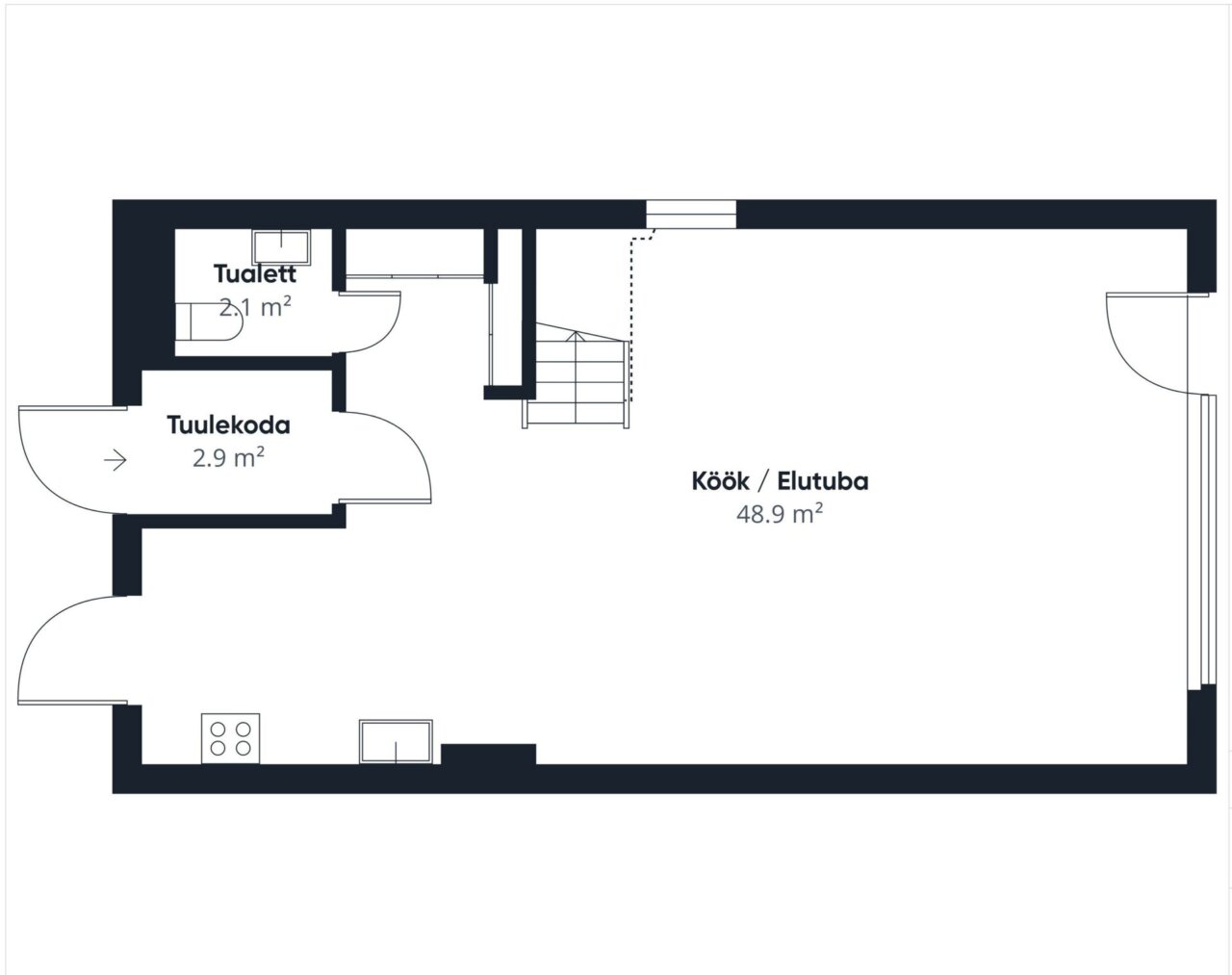 – Valgusküllane elutuba/köök väga avara ja läbimõeldud planeeringuga. (48,9m2)