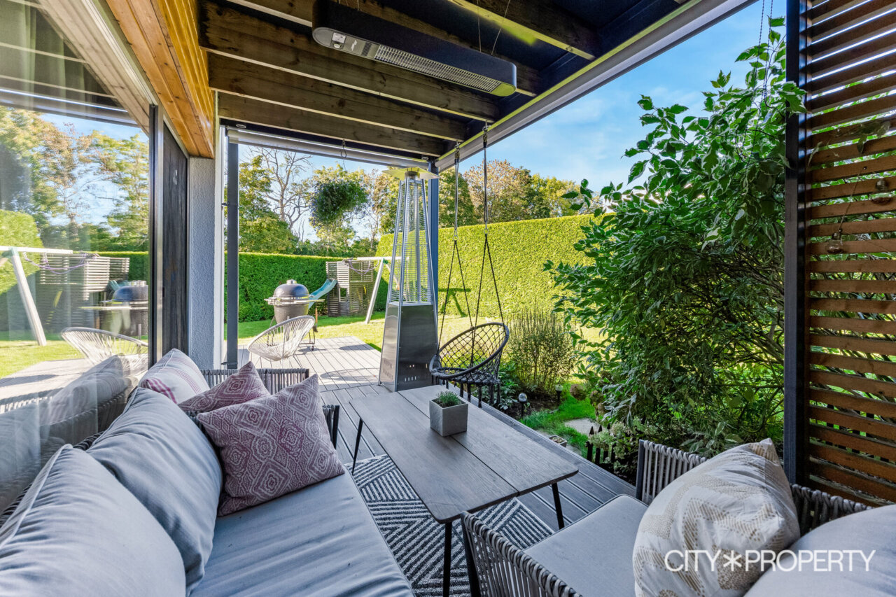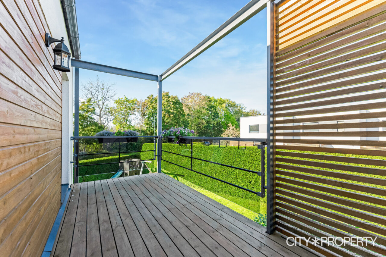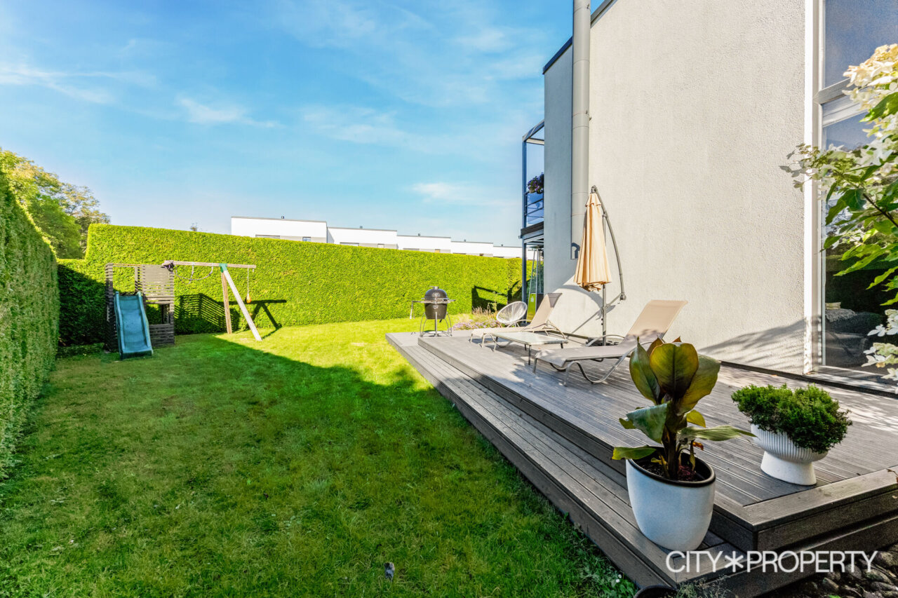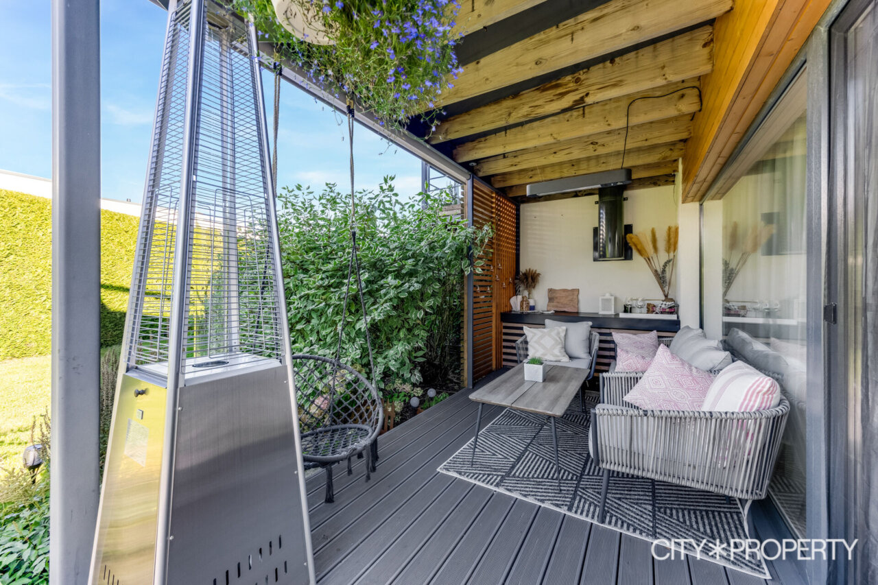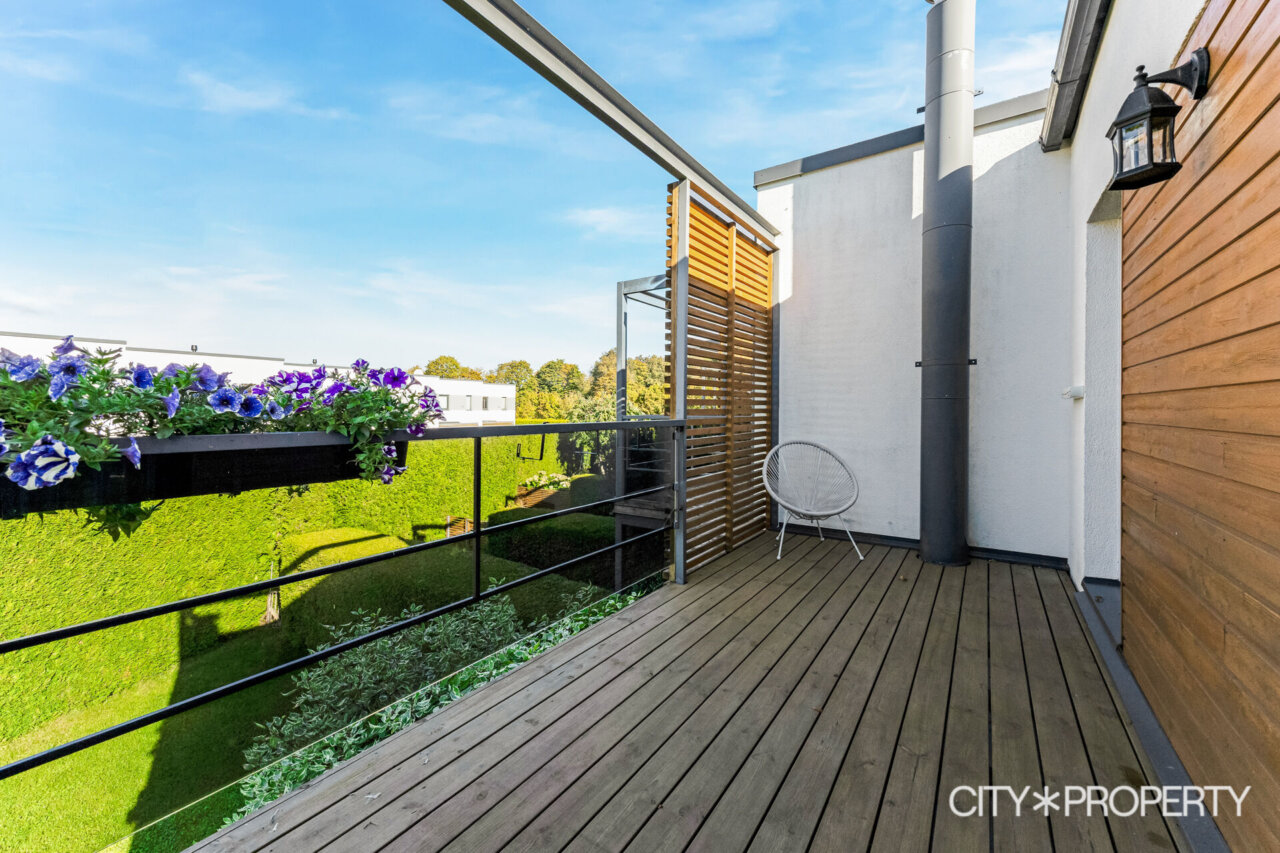 Elutoast pääseb päeva- ja õhtupäikesega terrassile (44 +m2), kus on piisavalt ruumi nii terrassimööblile kui ka taimekastidele ja kuhu on paigaldatud lisa panipaik väiksemate asjade ja tarvikute hoidmiseks. Terrassil on mõnus soojadel suveõhtutel pere ja sõpradega aega veeta. Külmemaks ajaks on terrassile paigaldatud ka soojendid. Terrass asub L-kujuliselt hoone otsas ja taga ning võimaldab nautida ülimat privaatsust. Kogu terrassi ja boksi ümbritsev hooviala on võõra silma eest varjatud ligi 3-meetrise tiheda elupuuhekiga